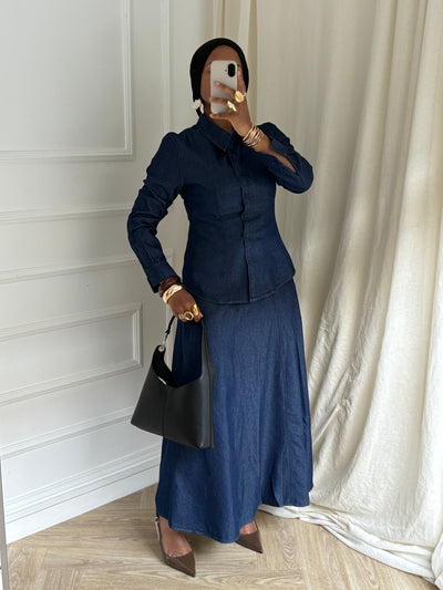 ENSEMBLE JUPE JEAN ÉVASÉE