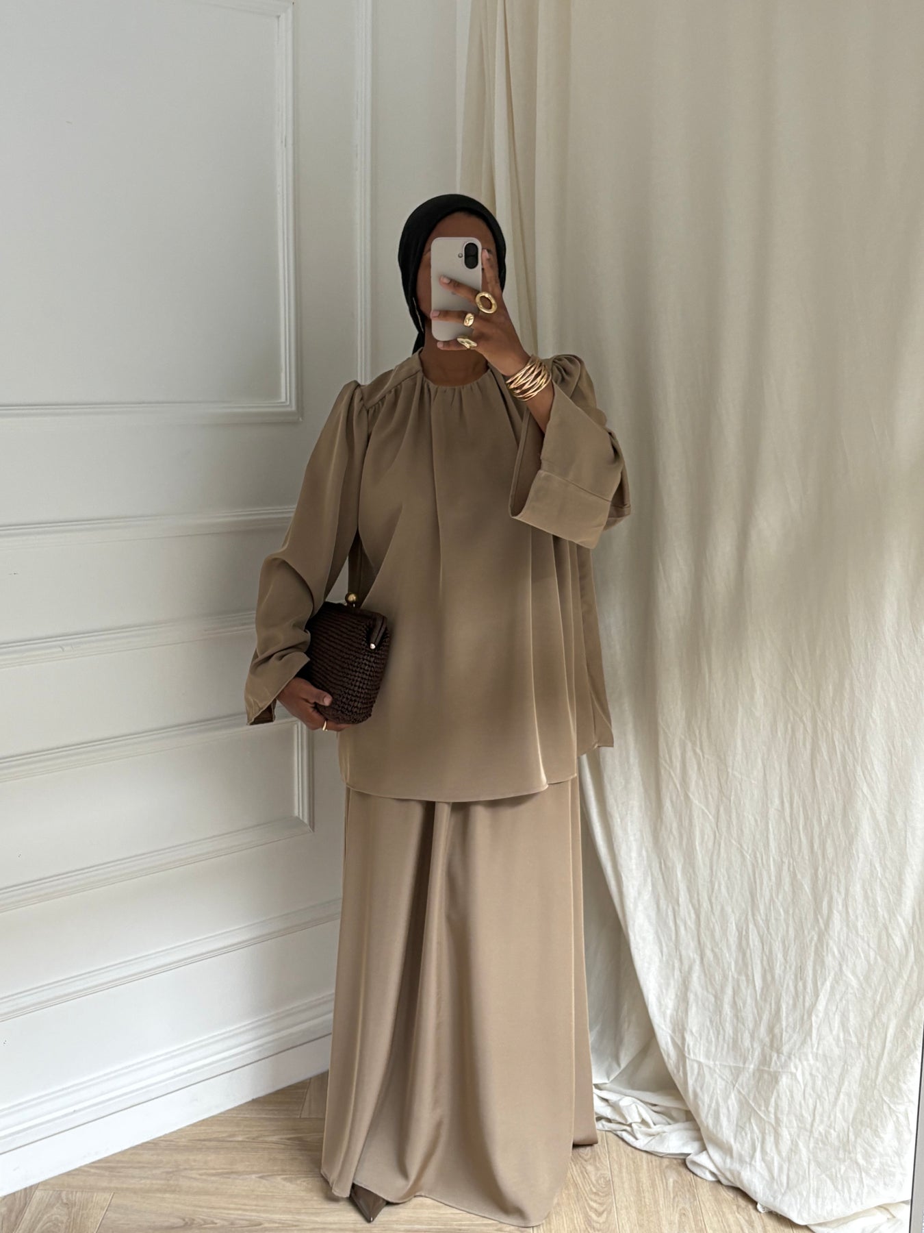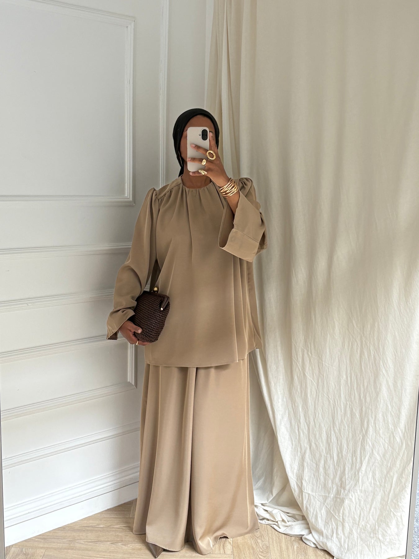 Découvre l’Ensemble Soft, une tenue à la fois chic et confortable qui sublimera ton quotidien. Conçu dans une matière douce et fluide, il t’offre un tombé raffiné et une allure élégante sans effort.