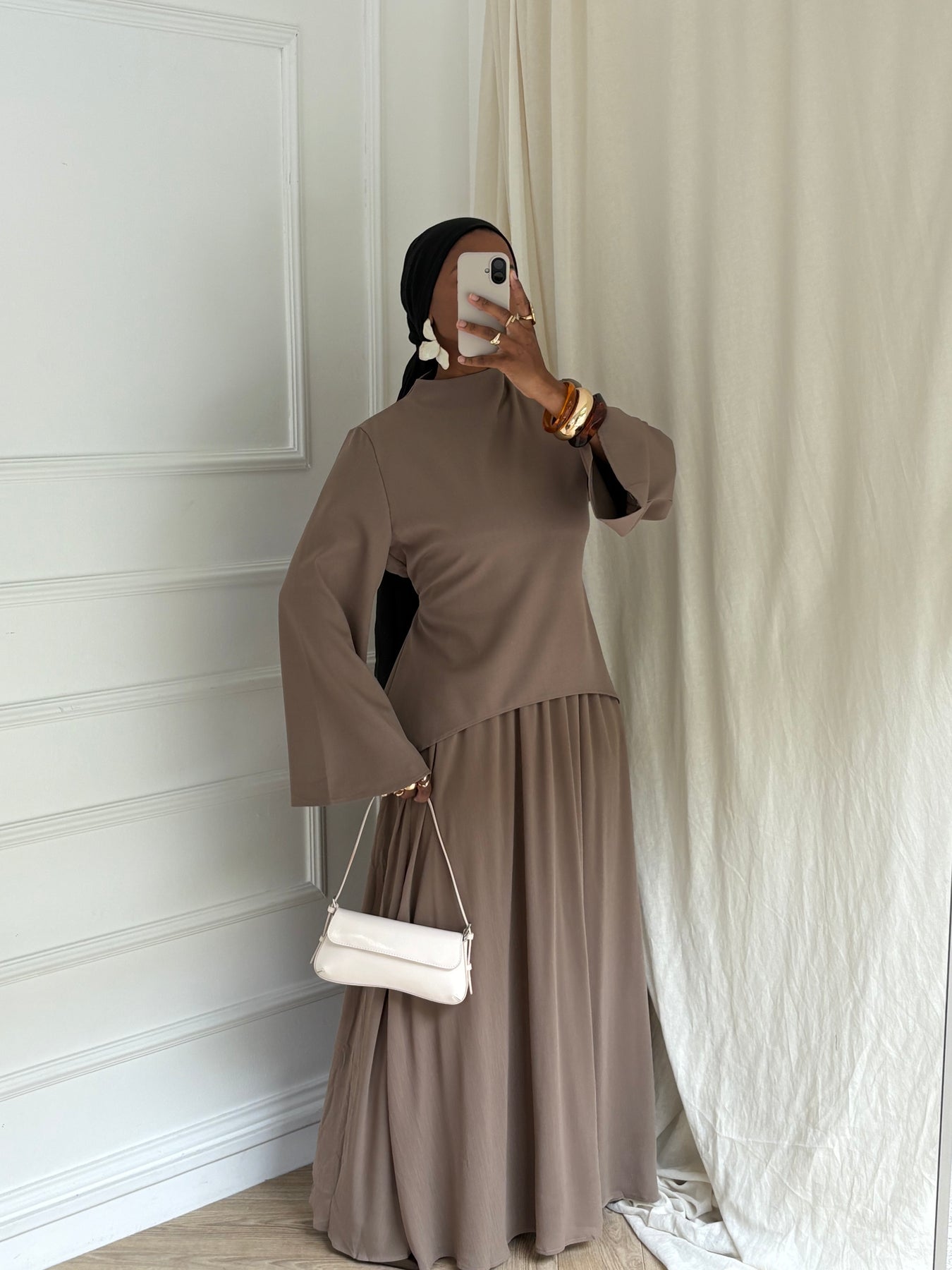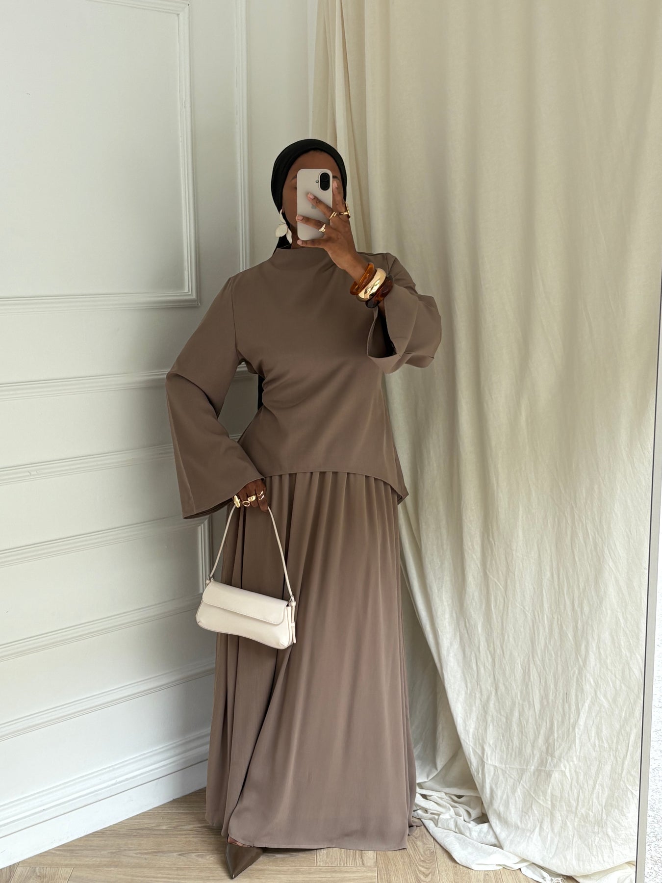 Ensemble : Haut cintré ajustable à l’arrière + Jupe longue