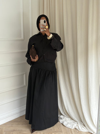 JUPE LONGUE PLISSÉE À BOUTONS NOIRE