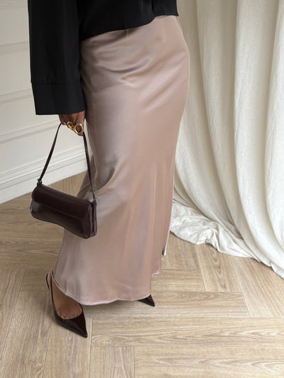 MAXI JUPE ÉVASÉE EN SIMILICUIR BEIGE