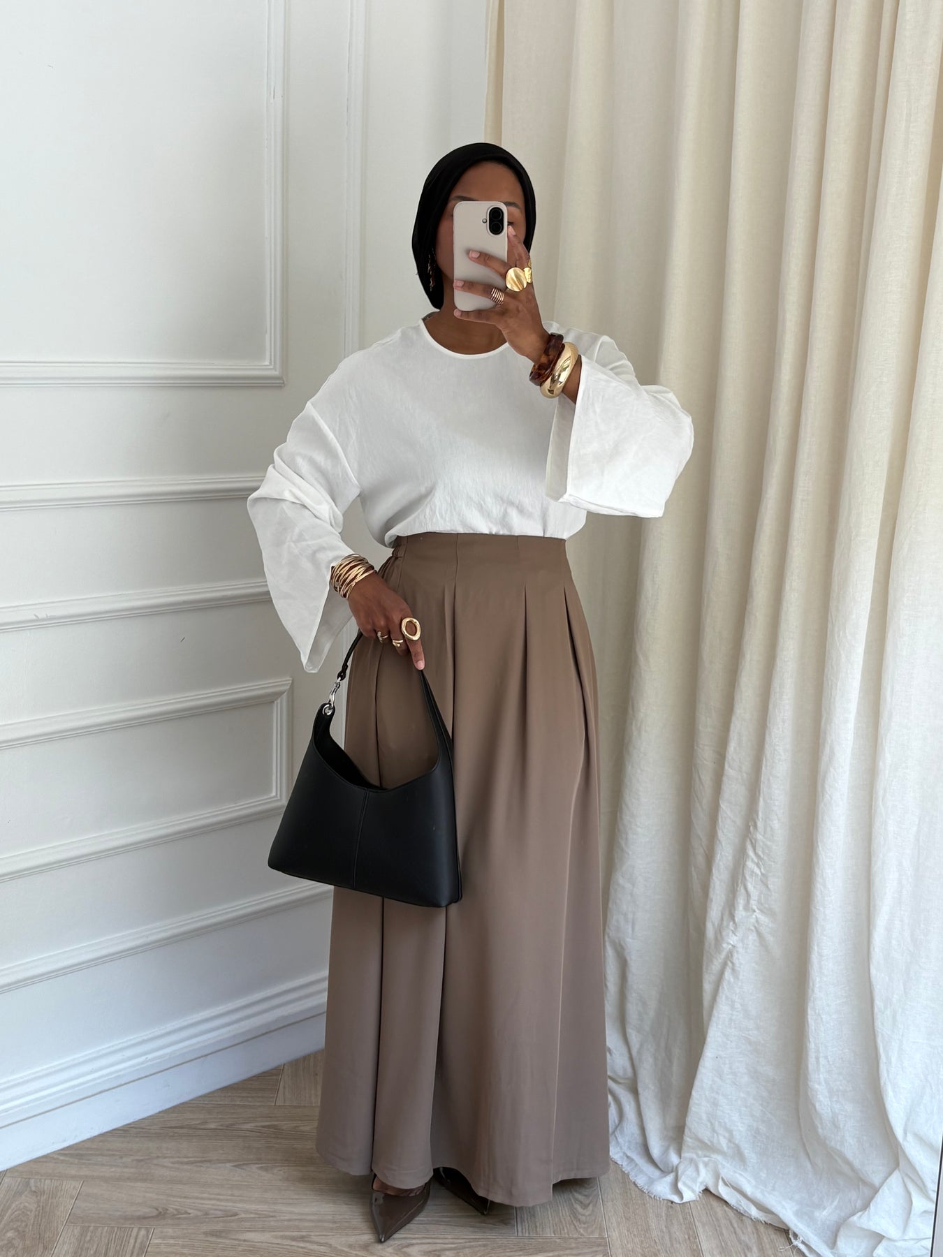 Parce qu’elle allie confort et style sans effort. Sa coupe fluide et légèrement plissée met en valeur la silhouette tout en restant pratique et adaptée à un style modeste. C’est le genre de pièce que tu porteras encore et encore, en hiver comme en mi-saison.