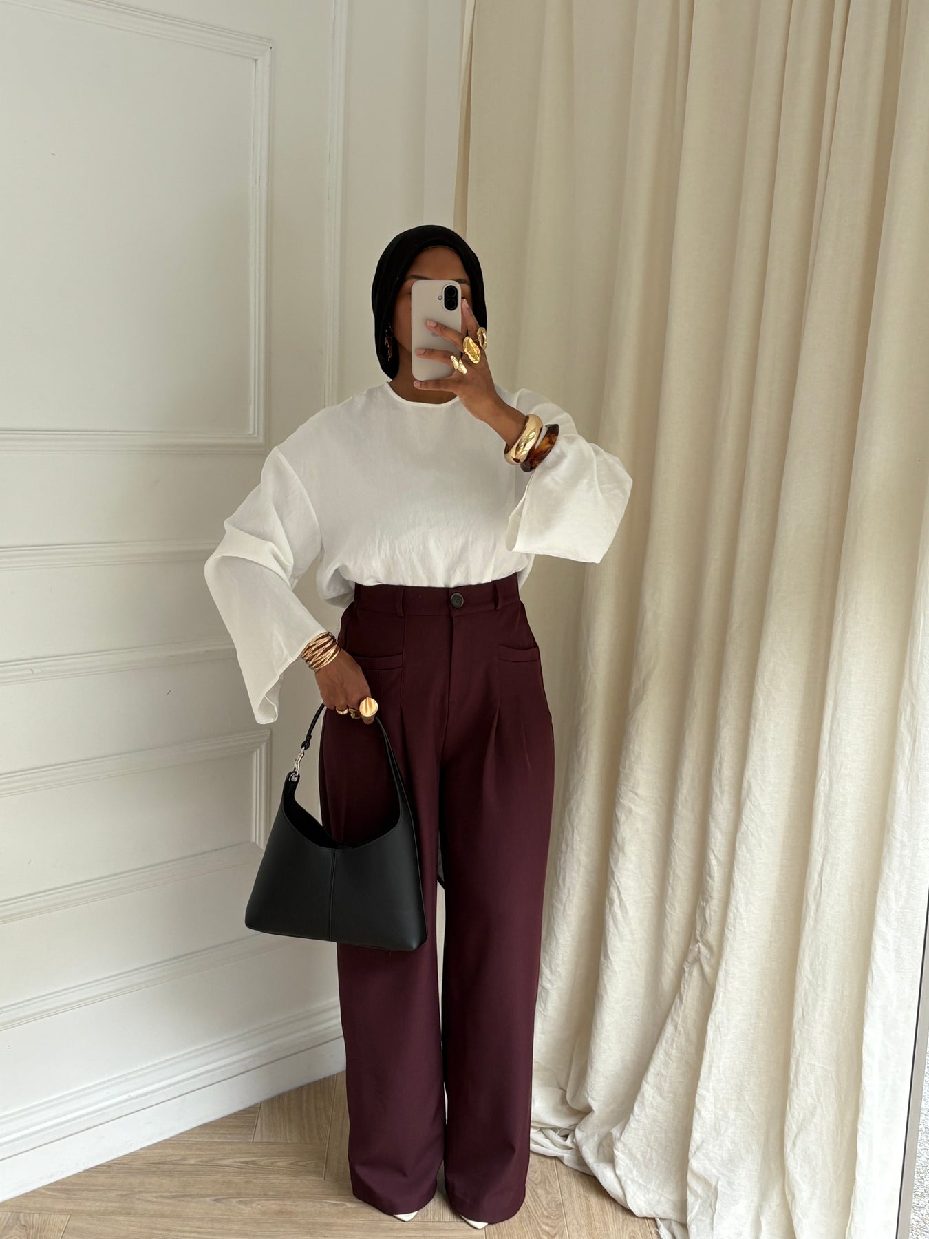 Conçu dans une matière légère, douce et fluide, ce pantalon offre un tombé impeccable et une allure élégante sans effort. Sa coupe large allonge la silhouette tout en restant ultra confortable, parfaite pour un look modest et raffiné au quotidien.