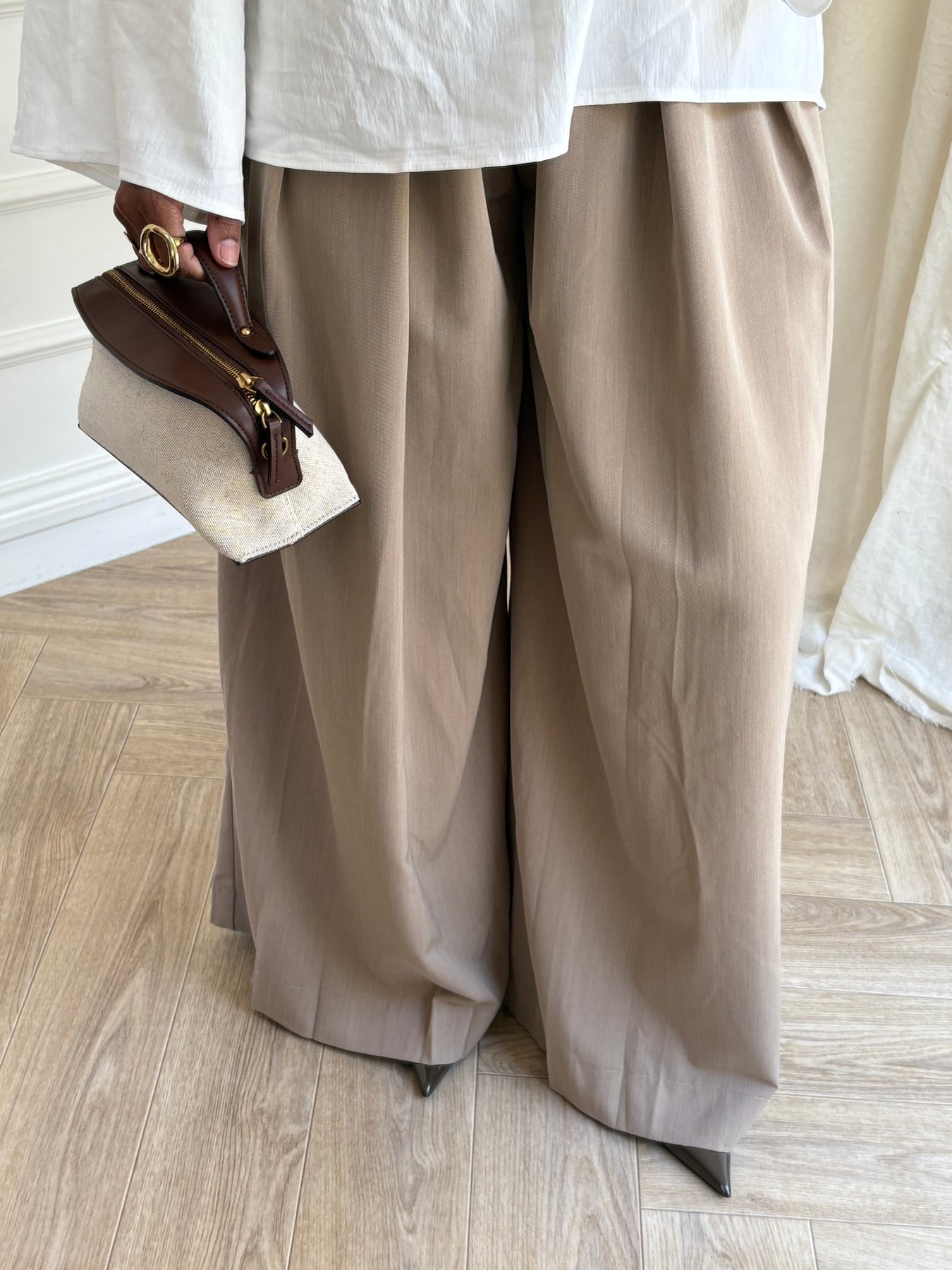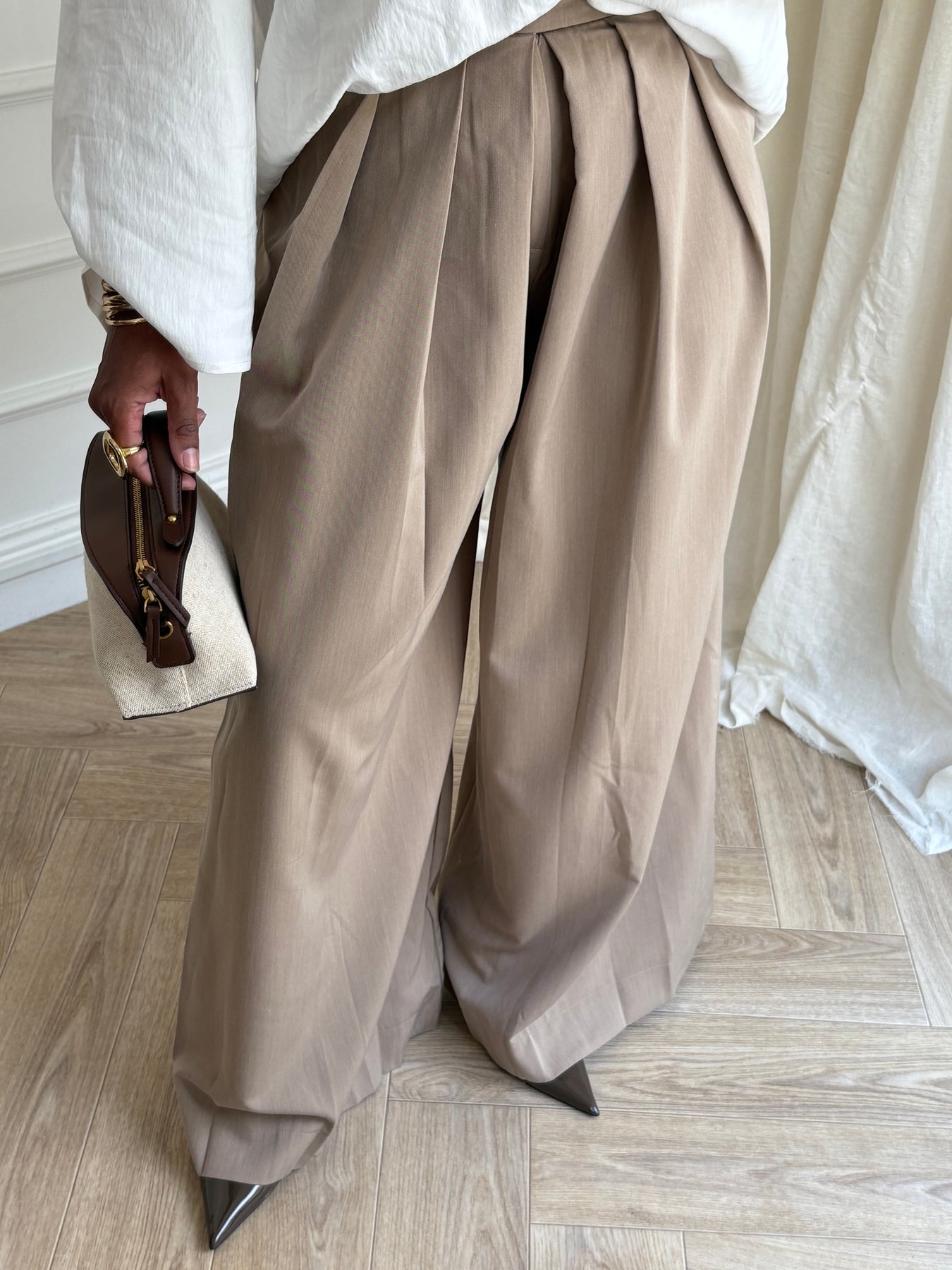 PANTALON PREMIUM LARGE ET PLISSÉ BEIGE FONCÉ