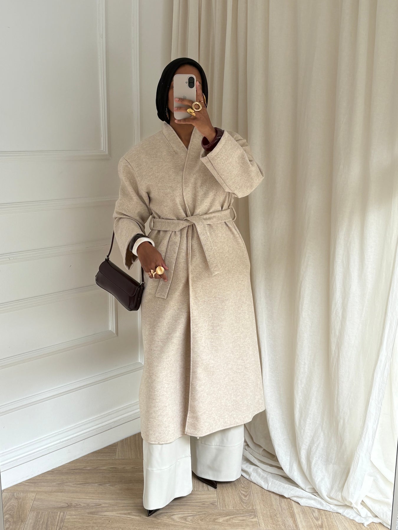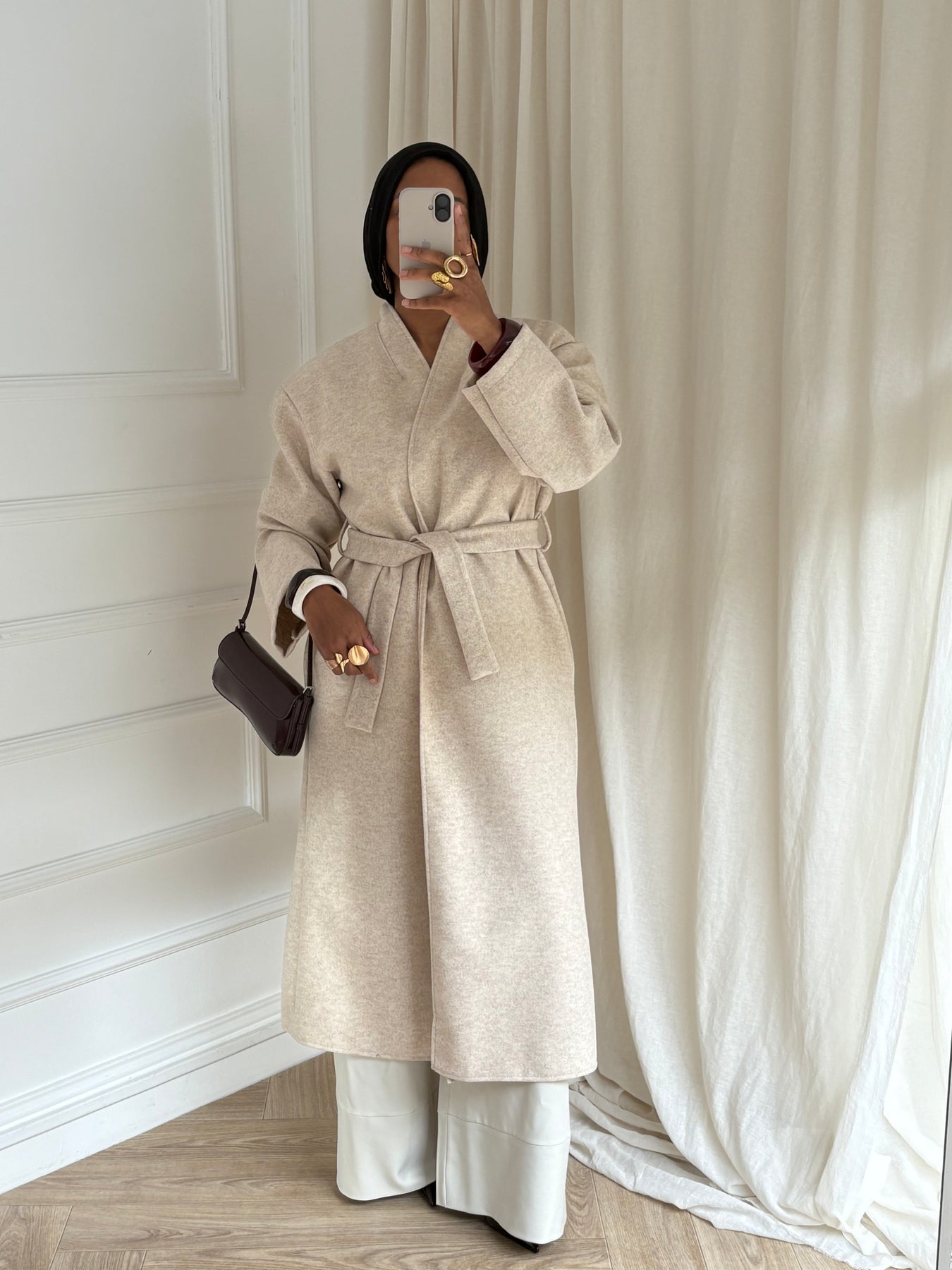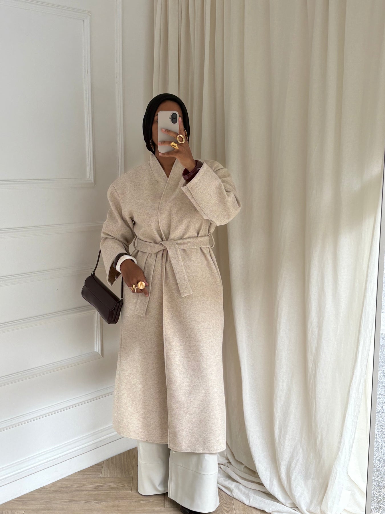Une coupe épurée, des lignes raffinées et une texture délicate : le manteau parfait pour les femmes qui veulent conjuguer modestie, élégance et modernité.