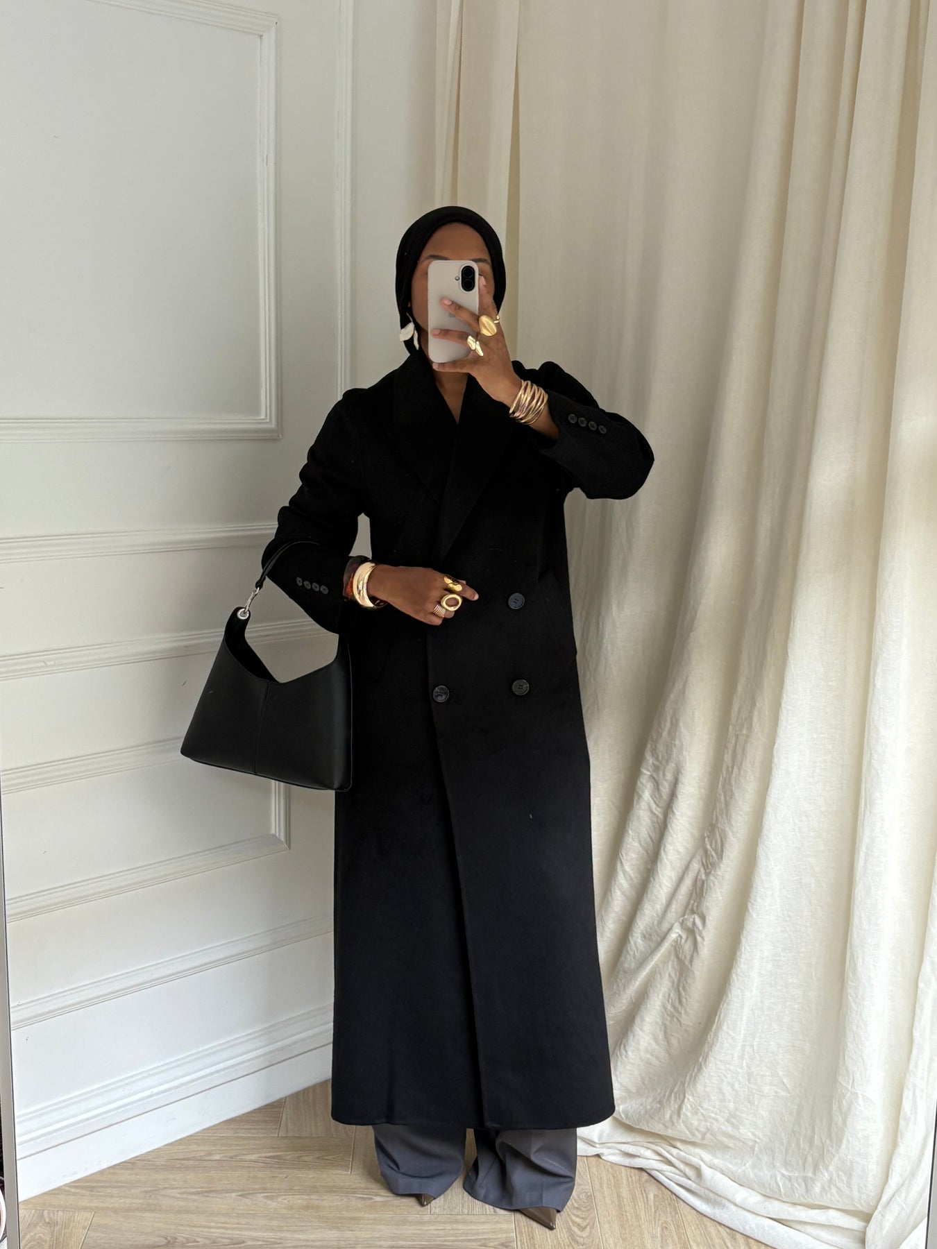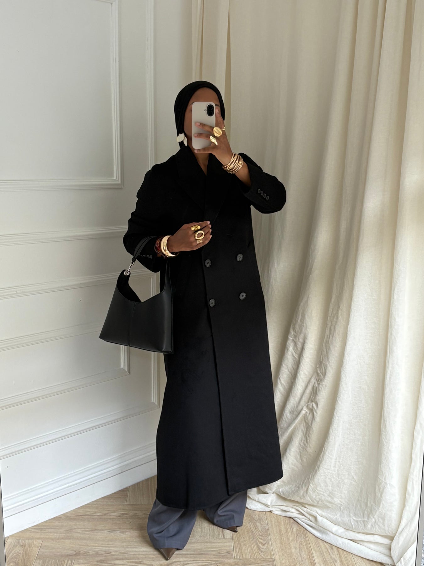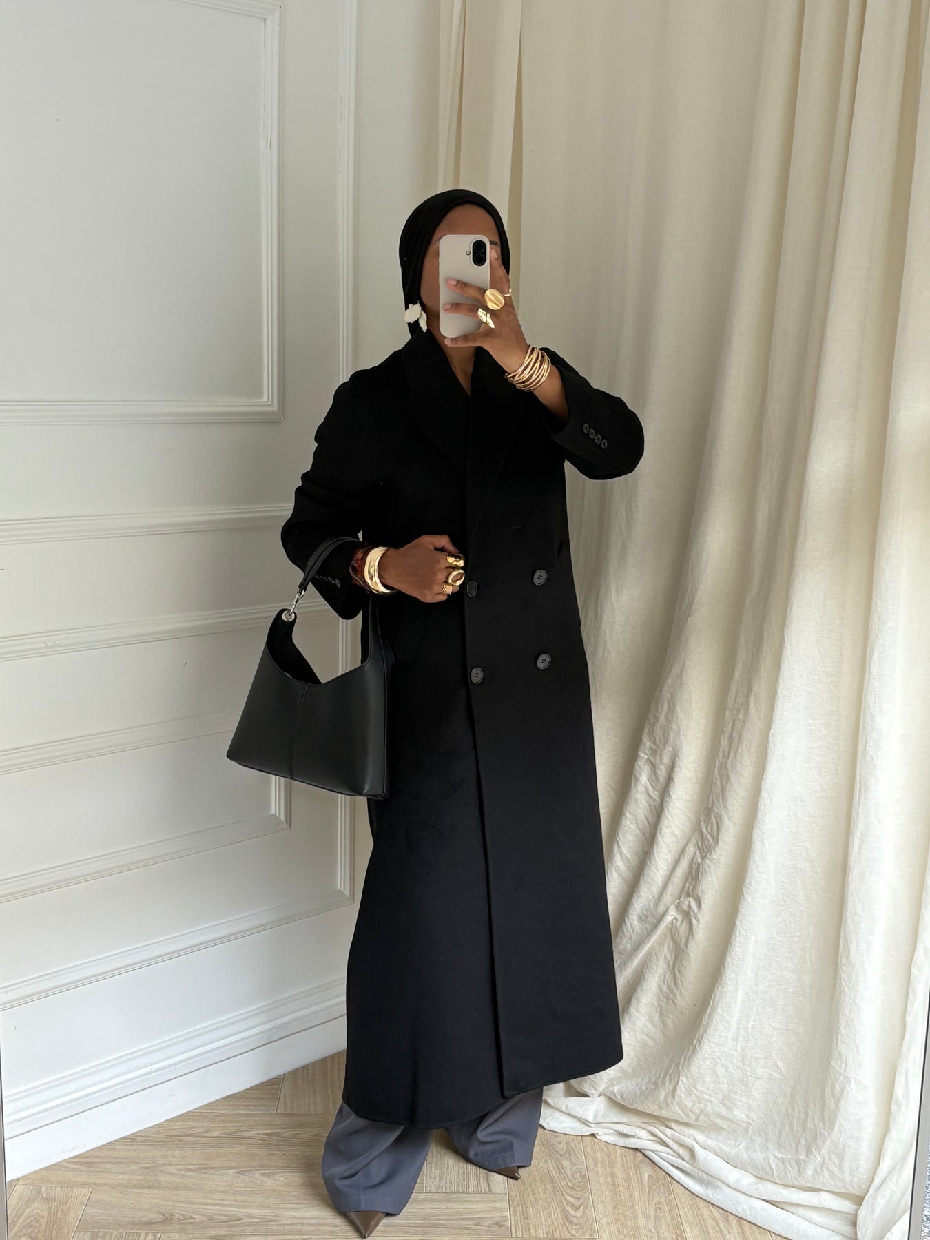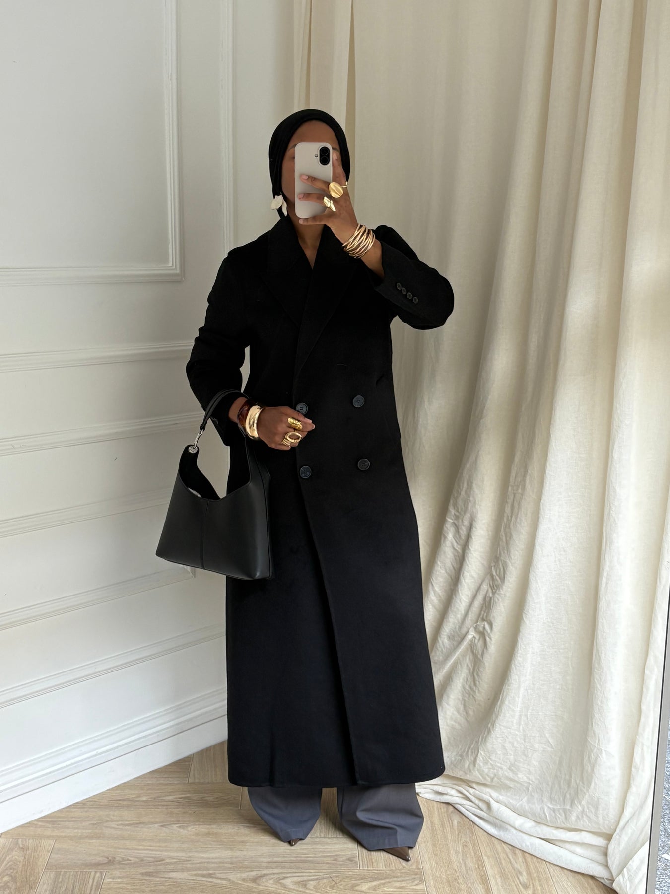 MANTEAU LONG EN LAINE HANDMADE NOIR