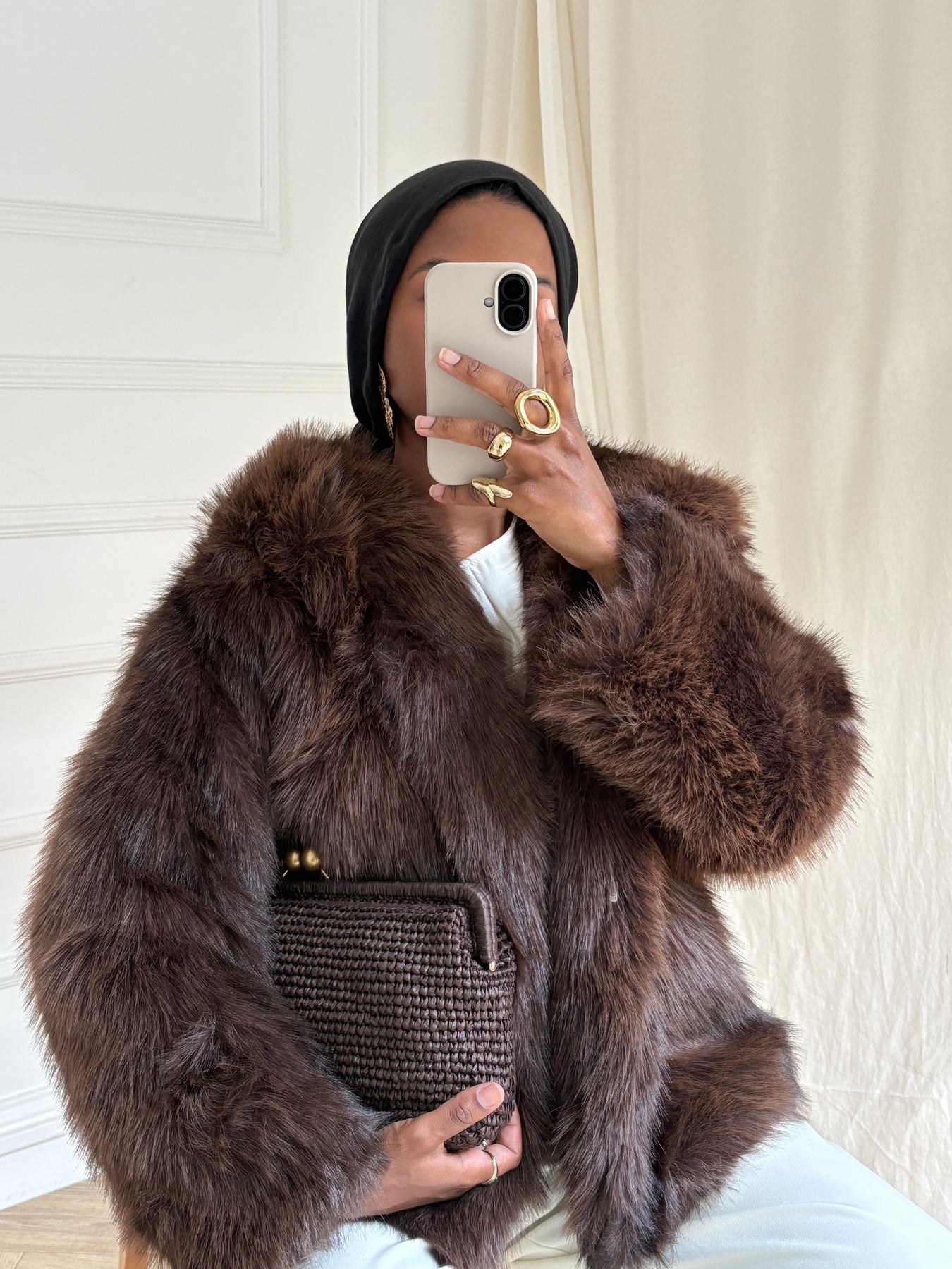 👉 La veste courte en fausse fourrure qui combine chaleur, confort et raffinement.