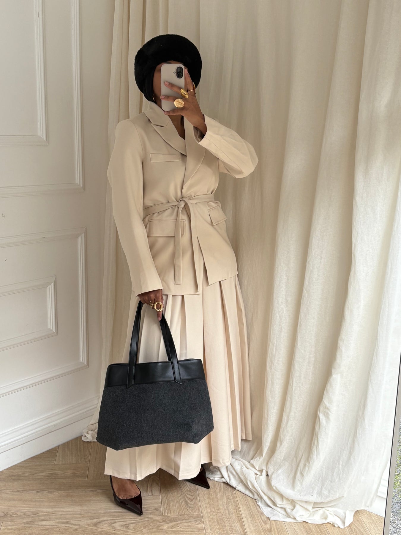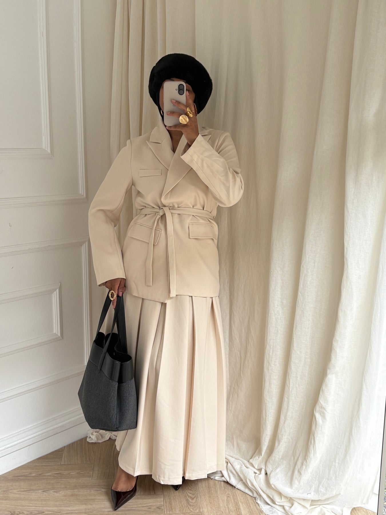 Blazer à la coupe droite et structurée avec ceinture intégrée pour ajuster la taille et mettre en valeur la silhouette. Confectionné dans une matière type blazer premium, il combine élégance, confort et modernité.