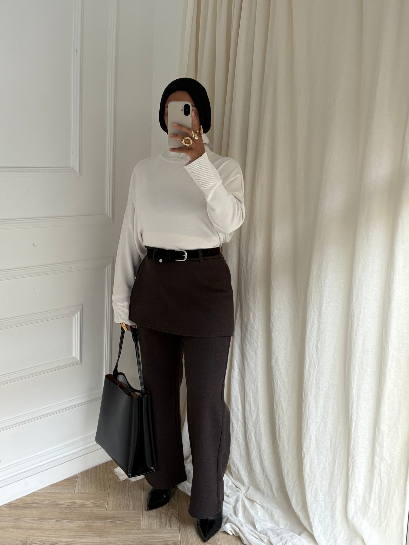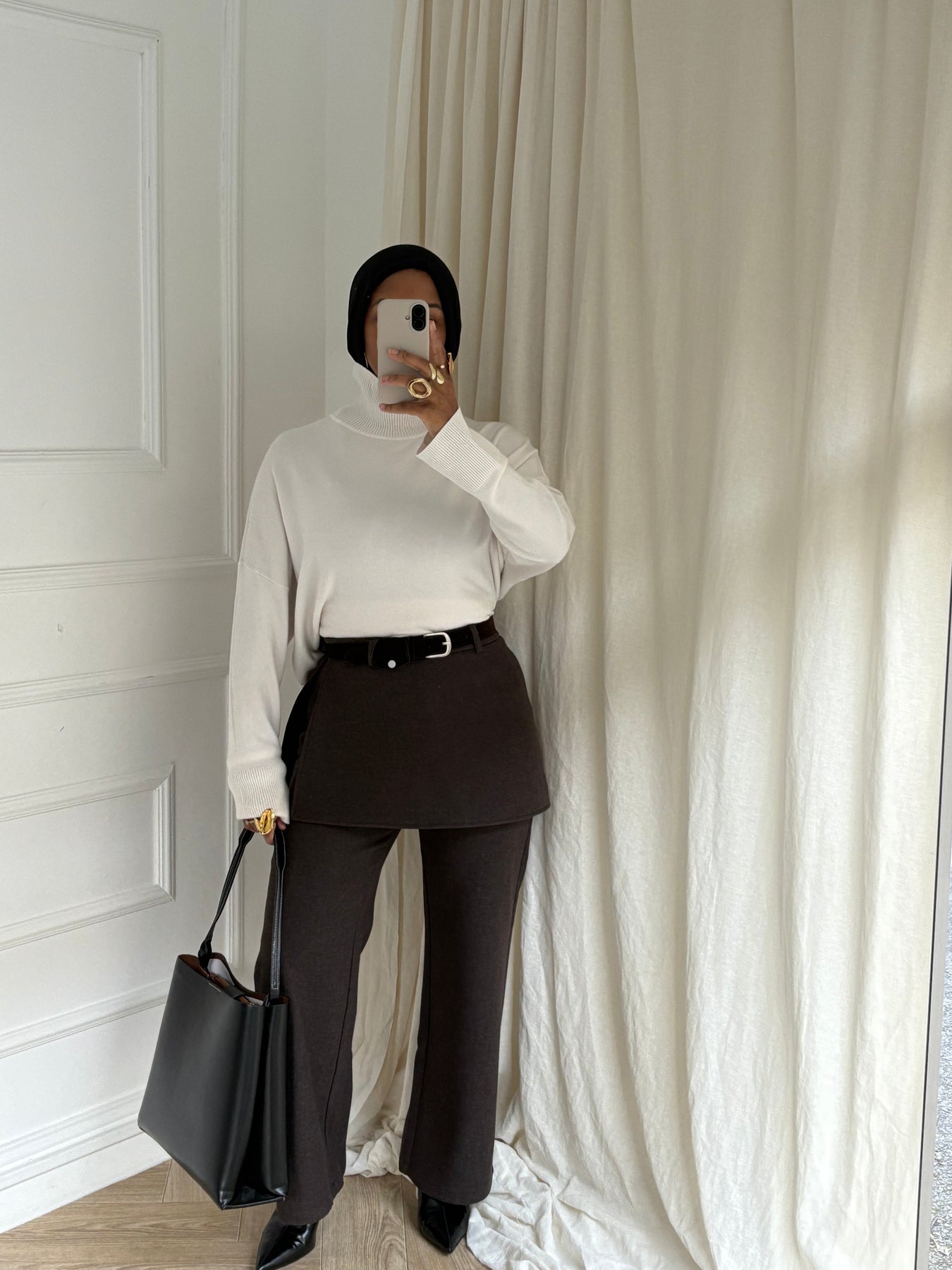Ce pantalon premium se distingue par sa jupette intégrée, pensée pour couvrir les fesses avec subtilité et raffinement. Une pièce forte, idéale pour les femmes qui recherchent une tenue modeste, moderne et ultra élégante.