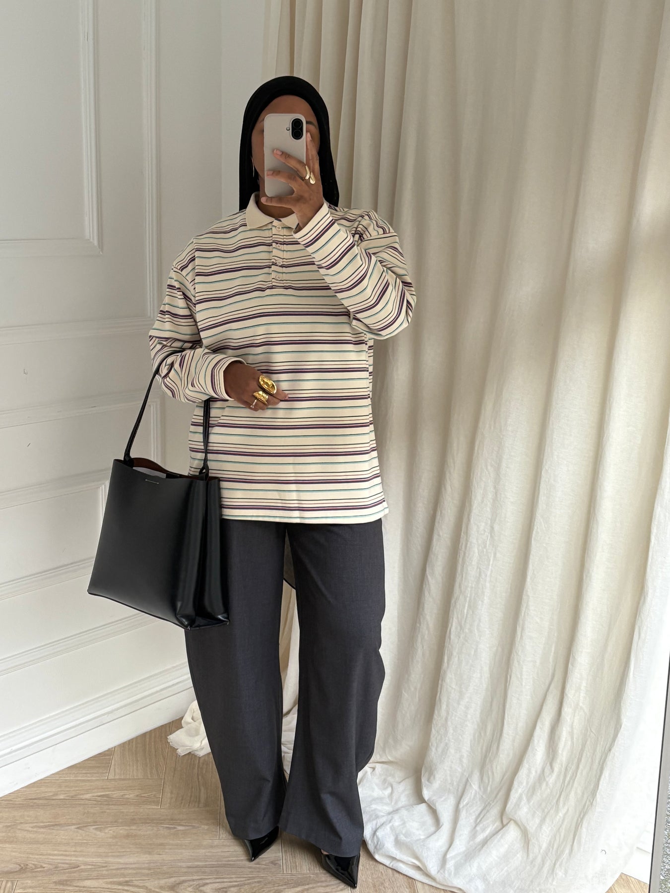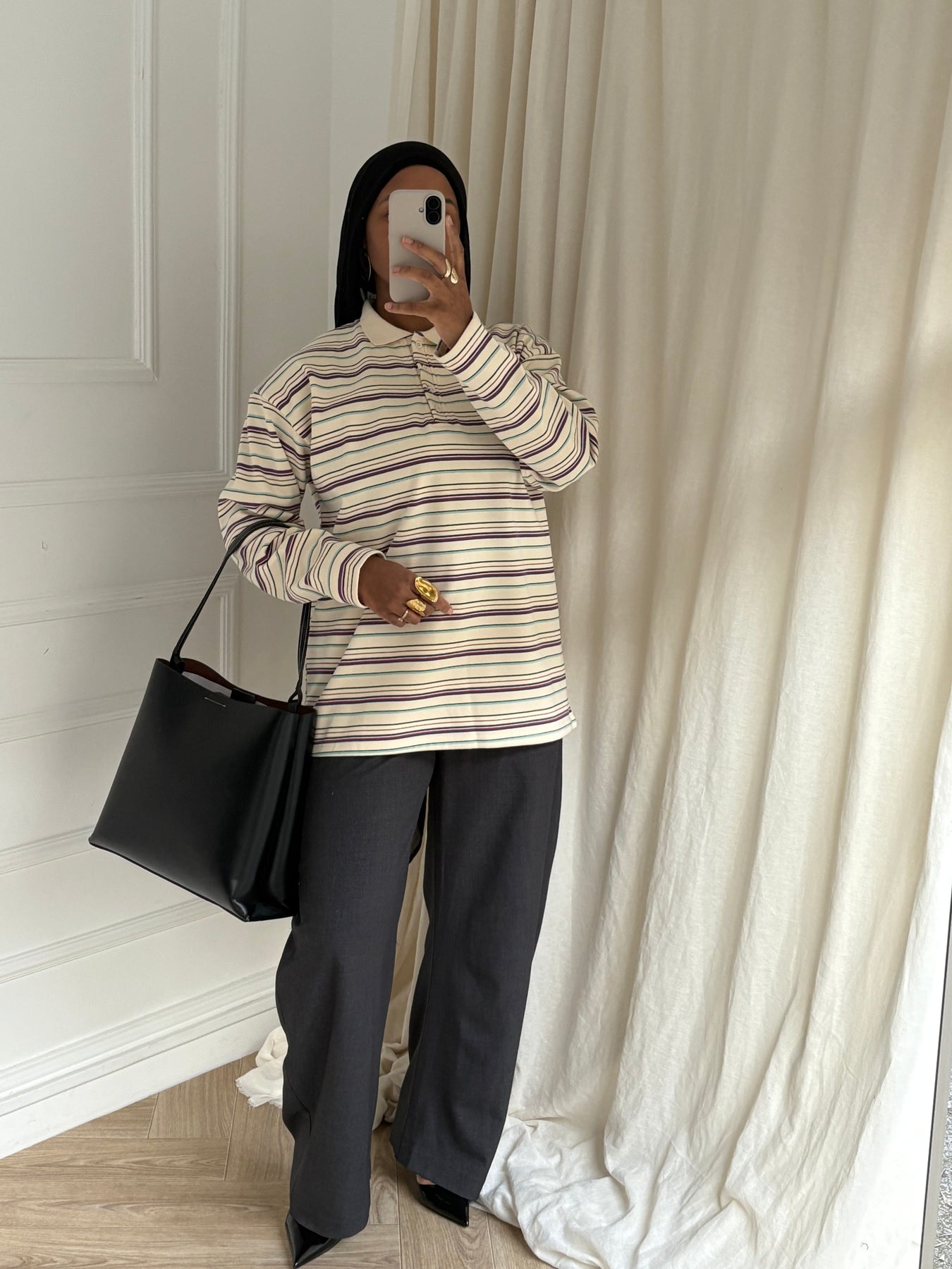 Son tombé impeccable et sa texture douce en font une pièce idéale pour les journées fraîches, à porter seule ou en superposition. Minimaliste mais sophistiqué, il s’intègre parfaitement dans un vestiaire modeste, moderne et confortable.