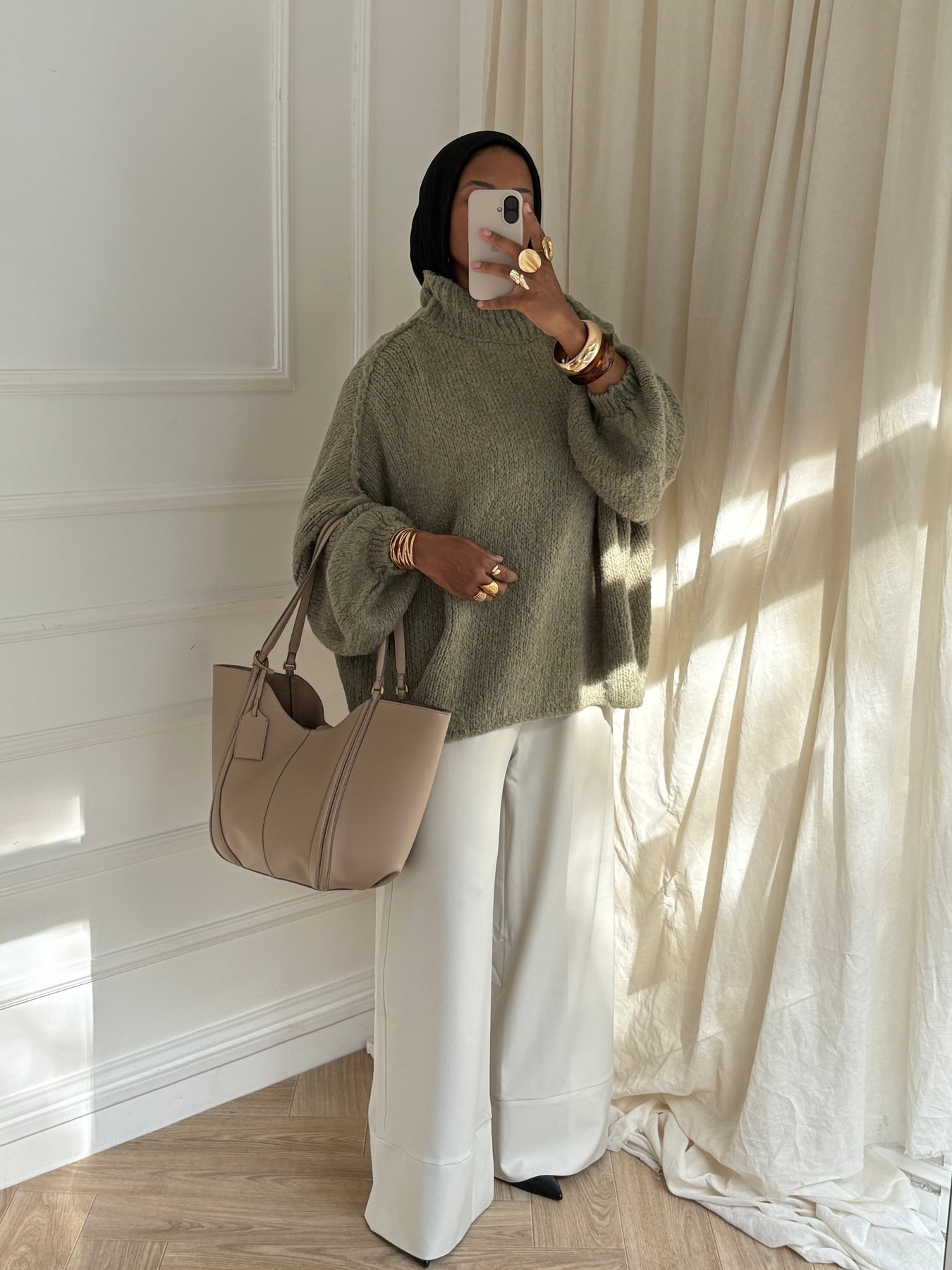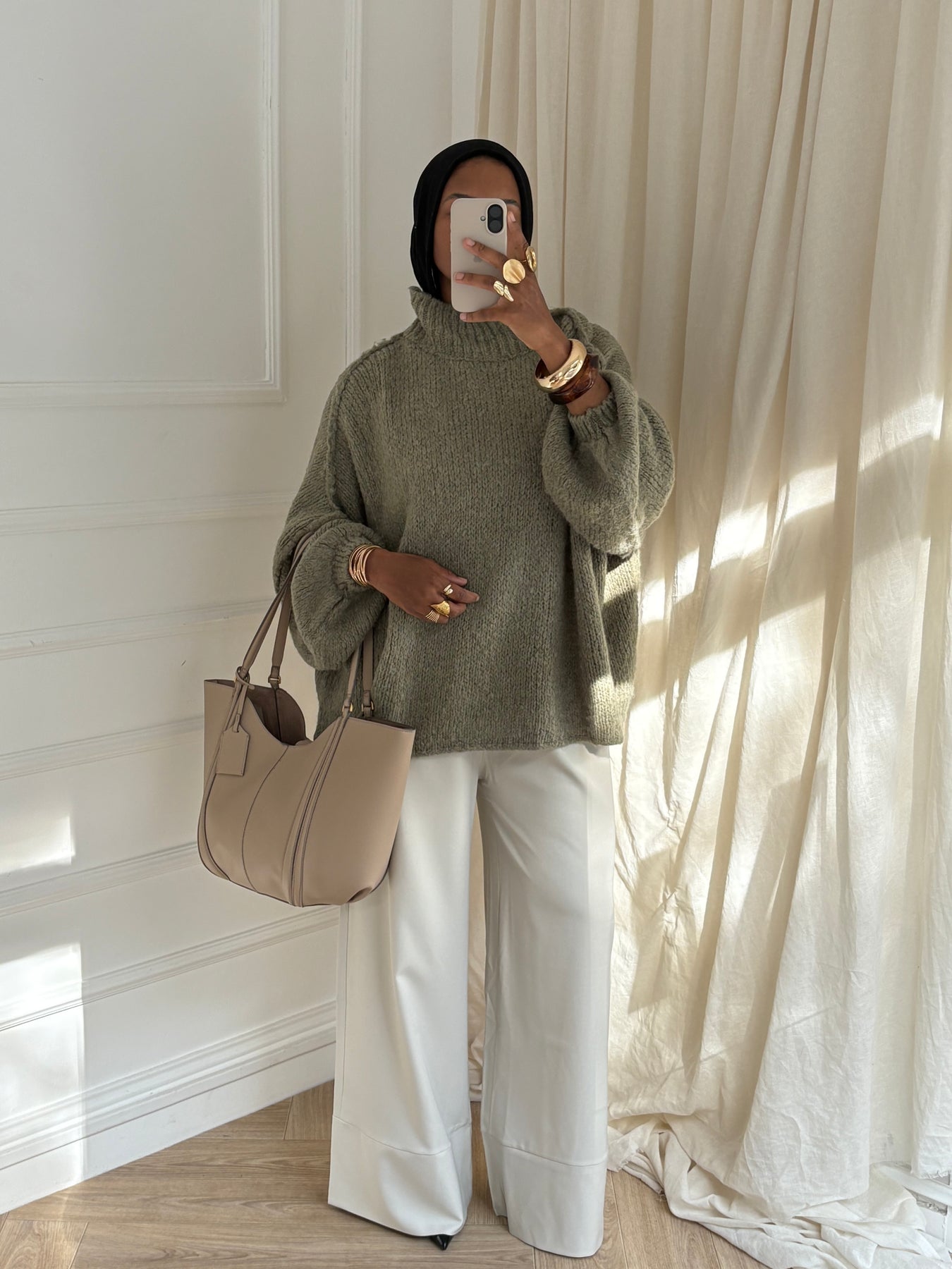 Ce pull oversize ultra comfy est un vrai cocon de confort ! Sa coupe généreuse couvre joliment les fesses, pour un style à la fois modeste et chic, et on s’y sent tellement bien dedans. Les manches longues et le col légèrement travaillé apportent une touche moderne et féminine, parfaite pour toutes les occasions.