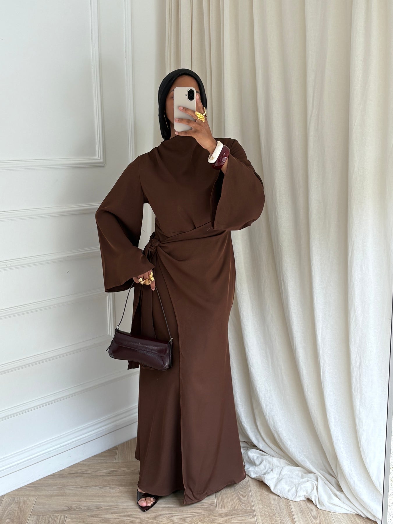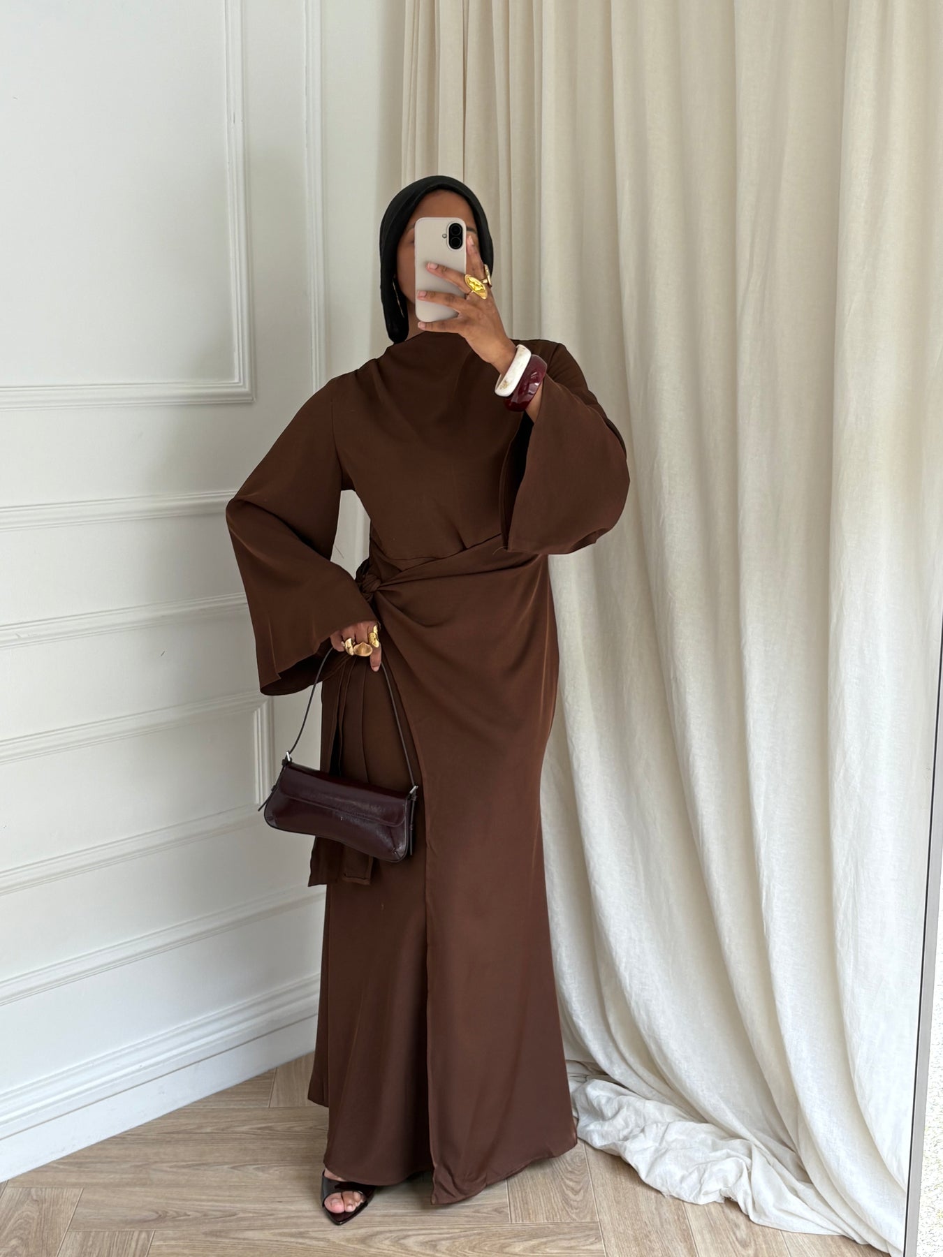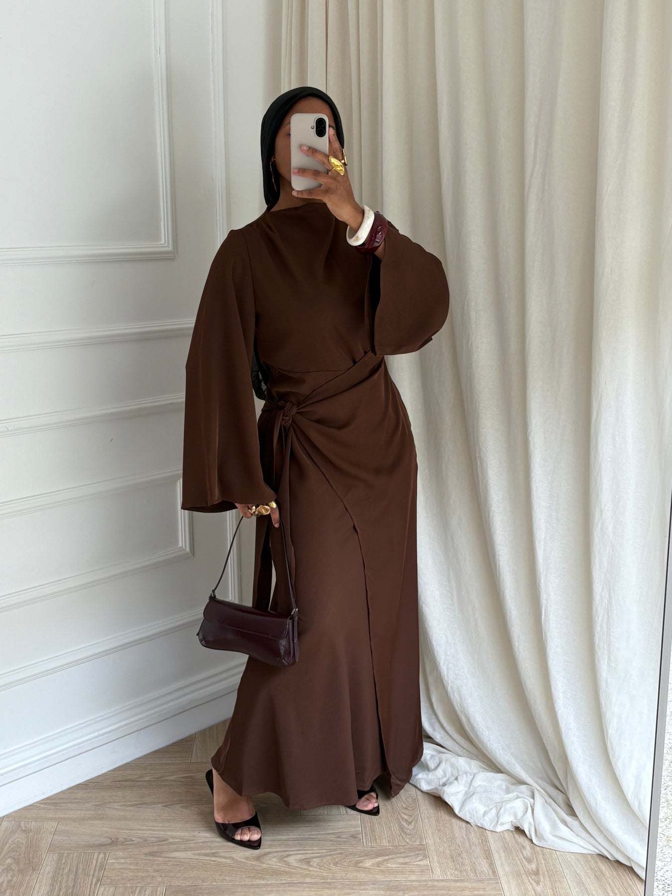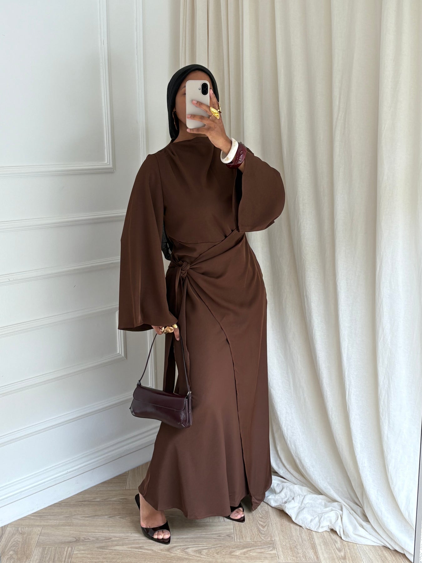 Laisse-toi séduire par cette robe longue à la coupe fluide et au tissu légèrement satiné, parfaite pour les grandes occasions. Elle allie élégance, confort et pudeur, tout en mettant en valeur ta silhouette sans la dévoiler.