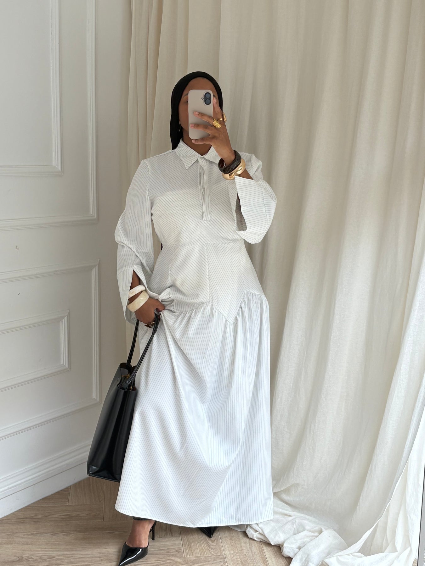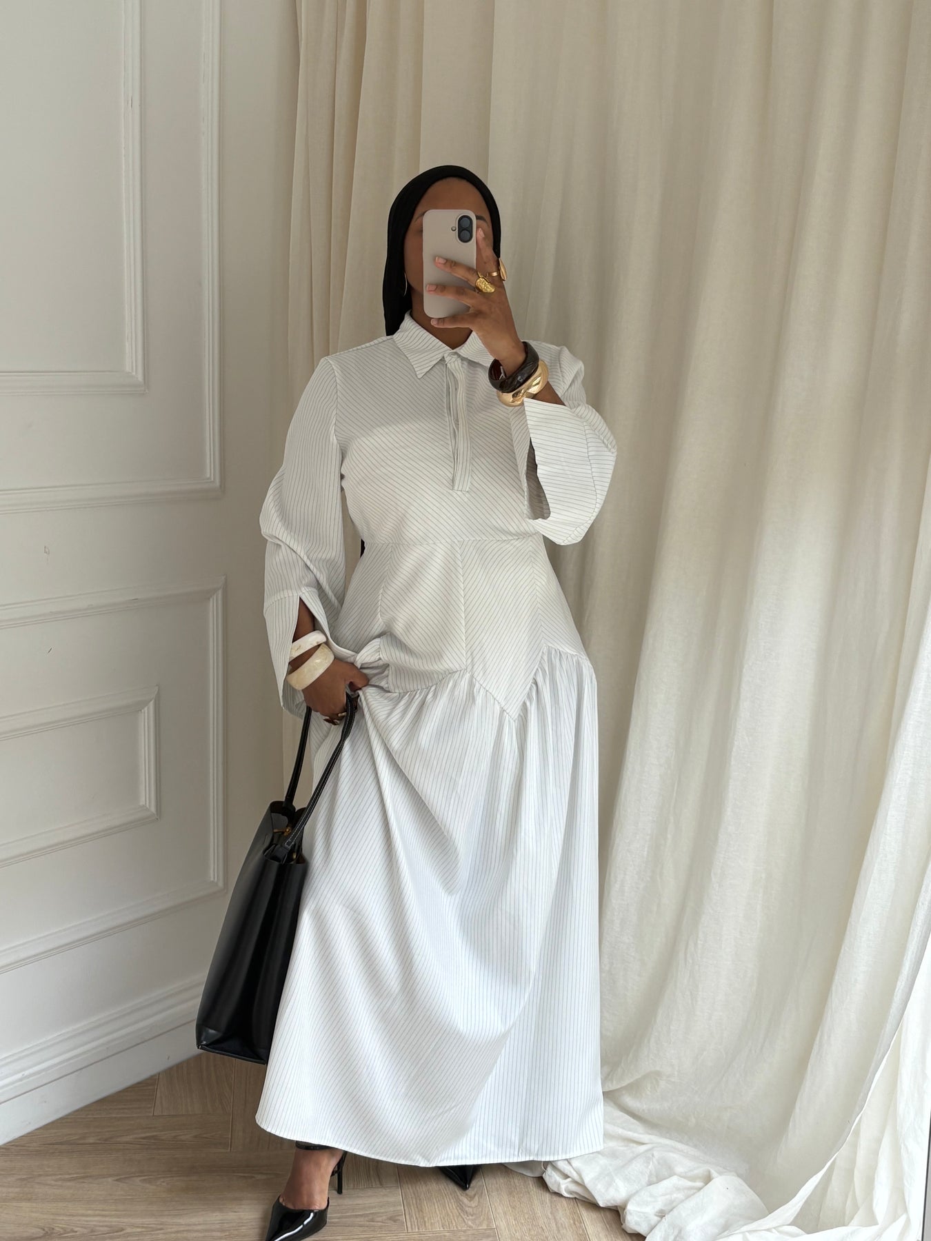 Robe chemise longue à rayures.