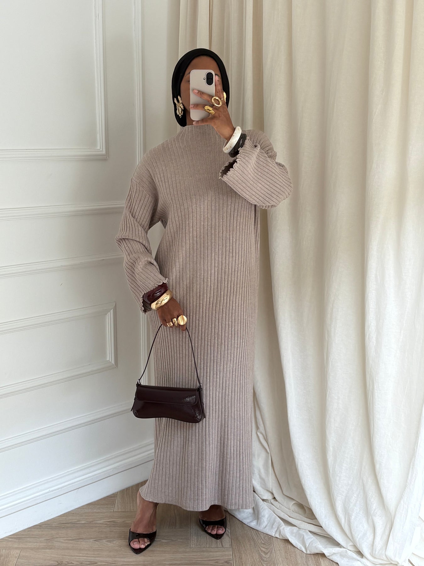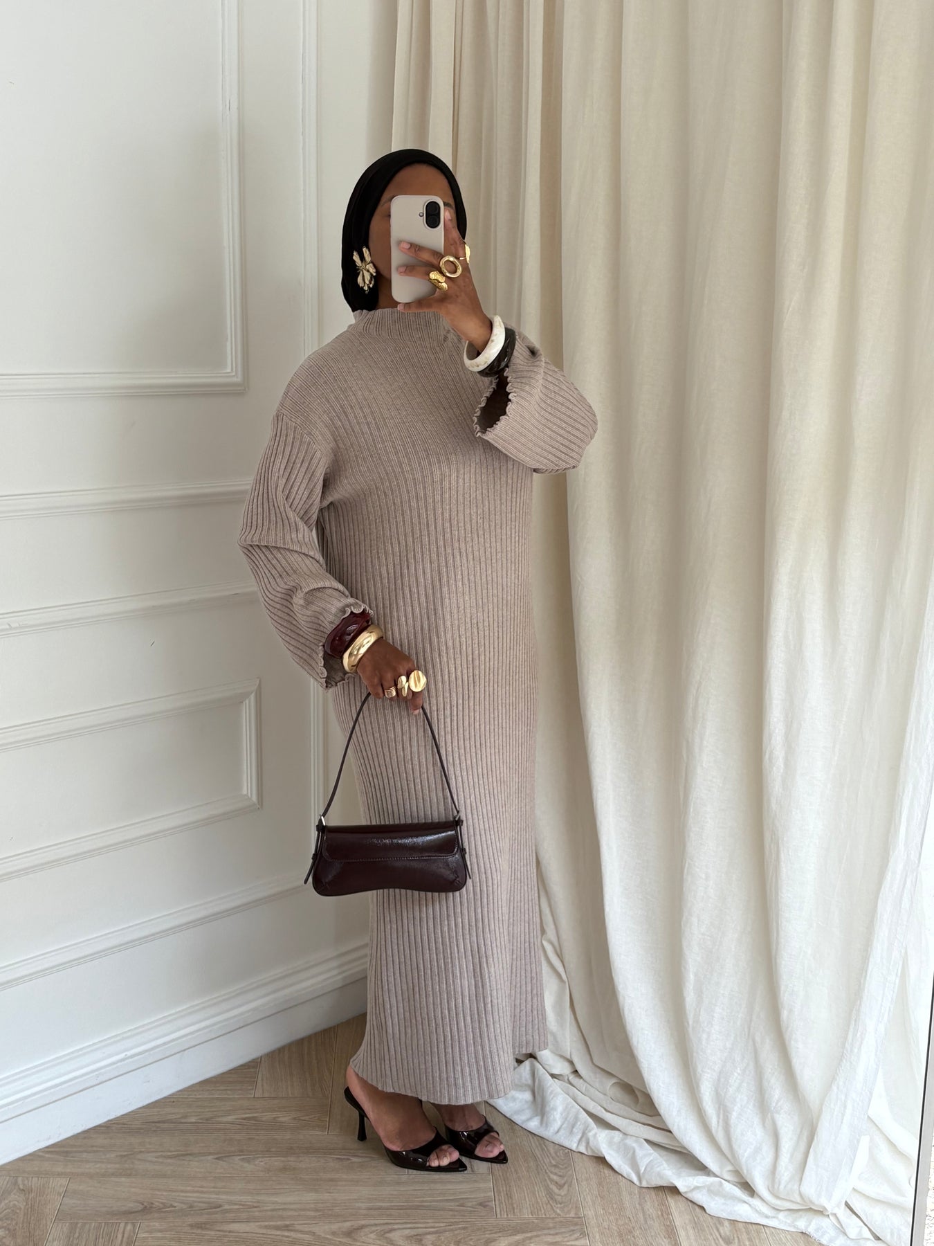 ROBE LONG EN MAILLE TAUPE CLAIR