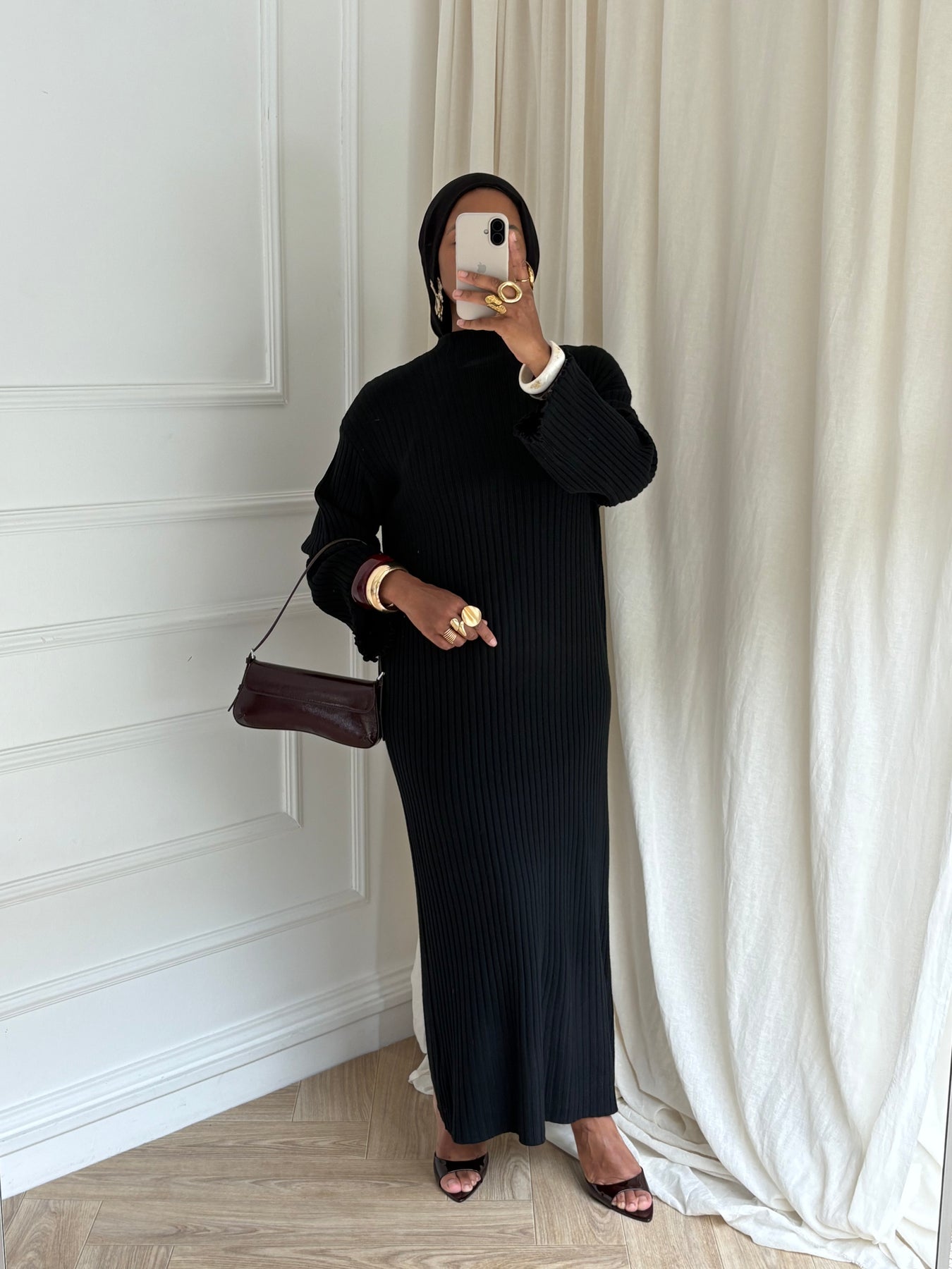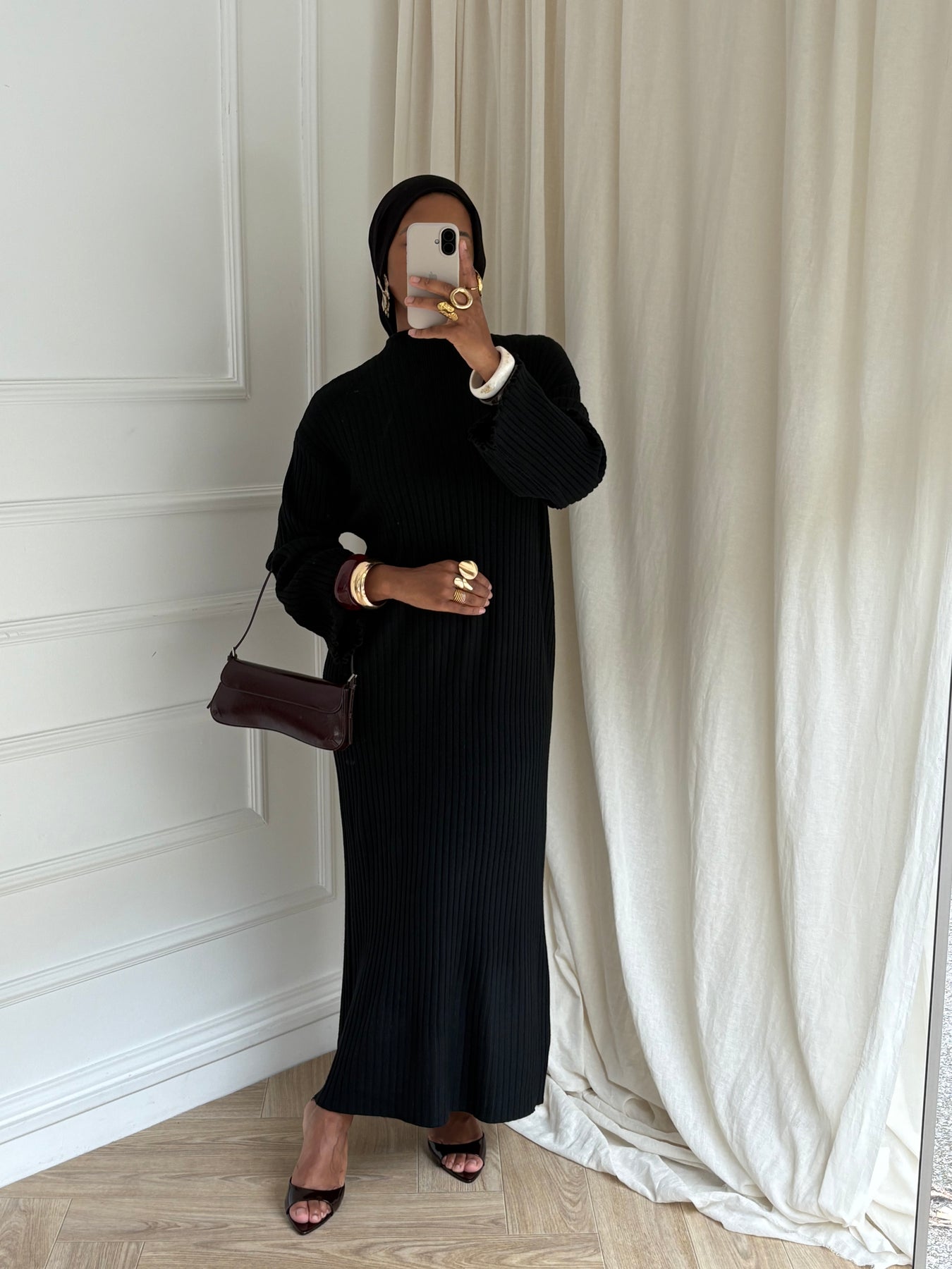 Cette robe longue en maille a été imaginée pour la femme qui aime se sentir belle, couverte et confiante, sans compromis entre style et confort.