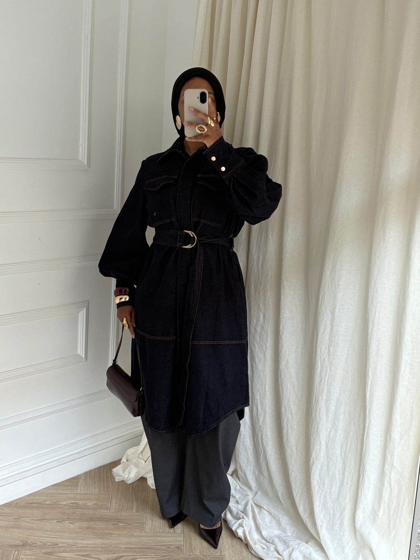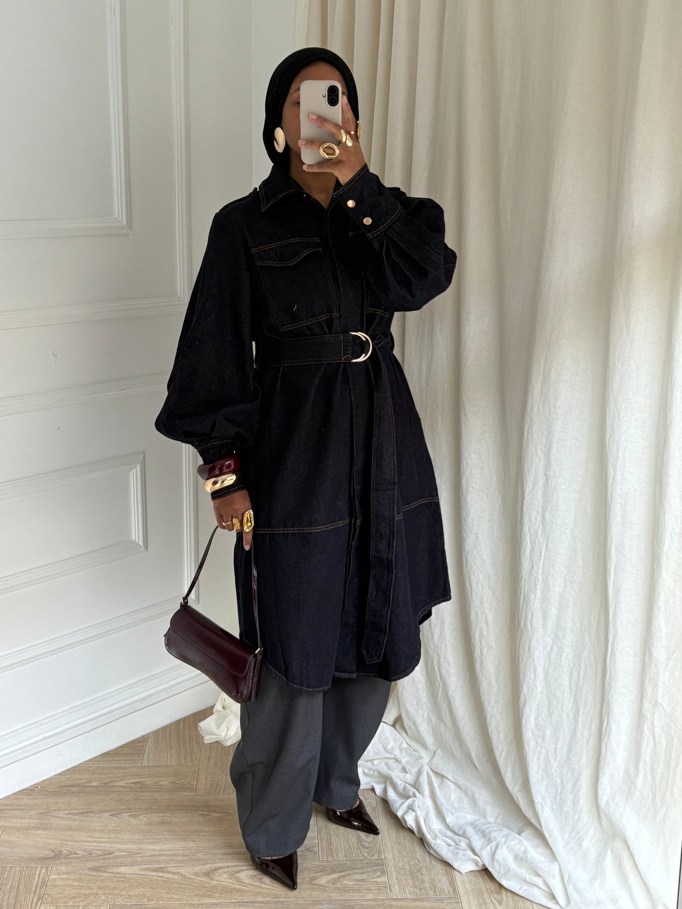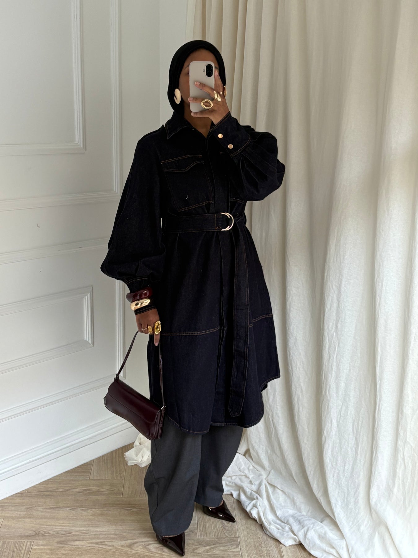 Une robe tunique en jean revisitée dans une version moderne, féminine et modeste.