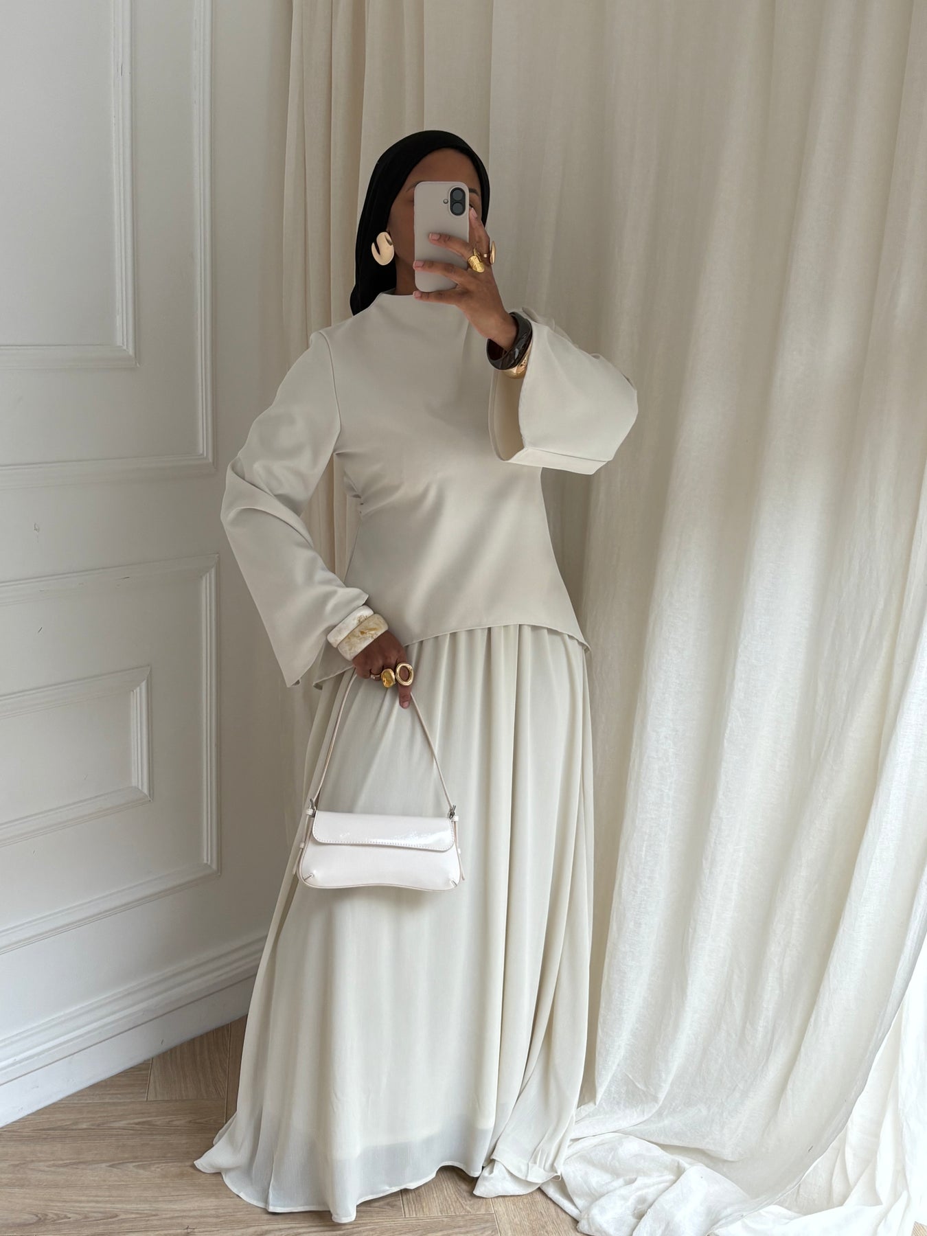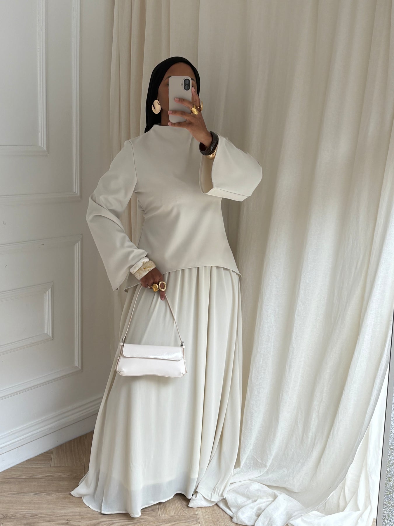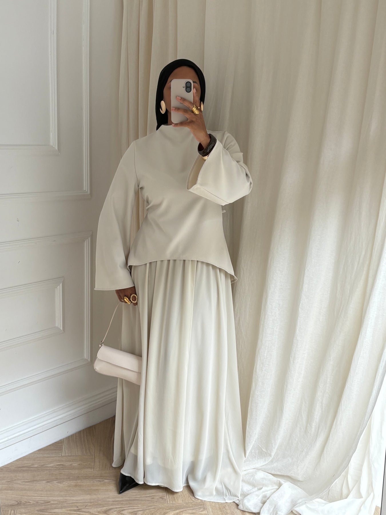 Un ensemble pensé pour sublimer ta féminité sans compromis entre confort et style. Son haut cintré ajustable épouse délicatement la silhouette tandis que la jupe longue apporte fluidité et allure.