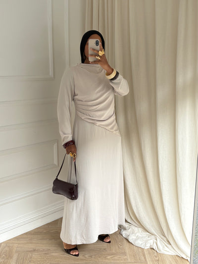 MAXI DRESS DRAPÉE PREMIUM BEIGE