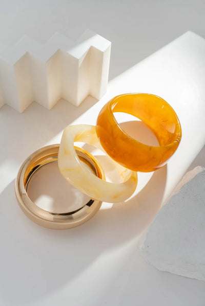 LOT DE 3 BRACELETS JONC – RÉSINE MARBRÉE & MÉTAL DORÉ