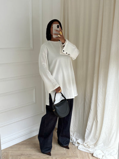 T-SHIRT BASIC POIGNETS BOUTONS BLANC