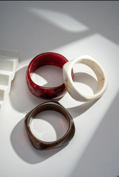Lot de 3 bracelets jonc en résine – Bordeaux • Écru • Brun