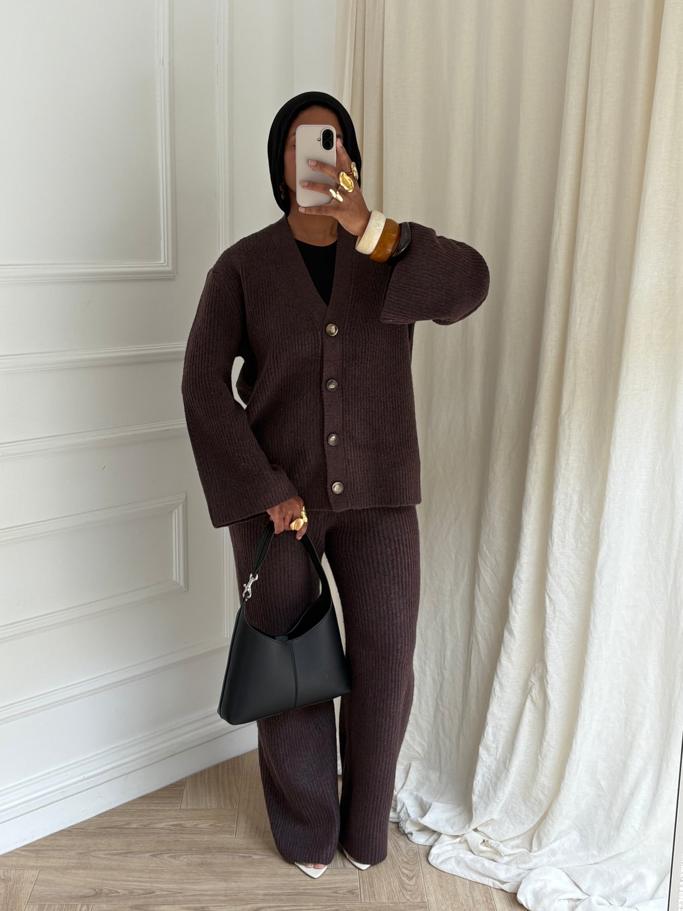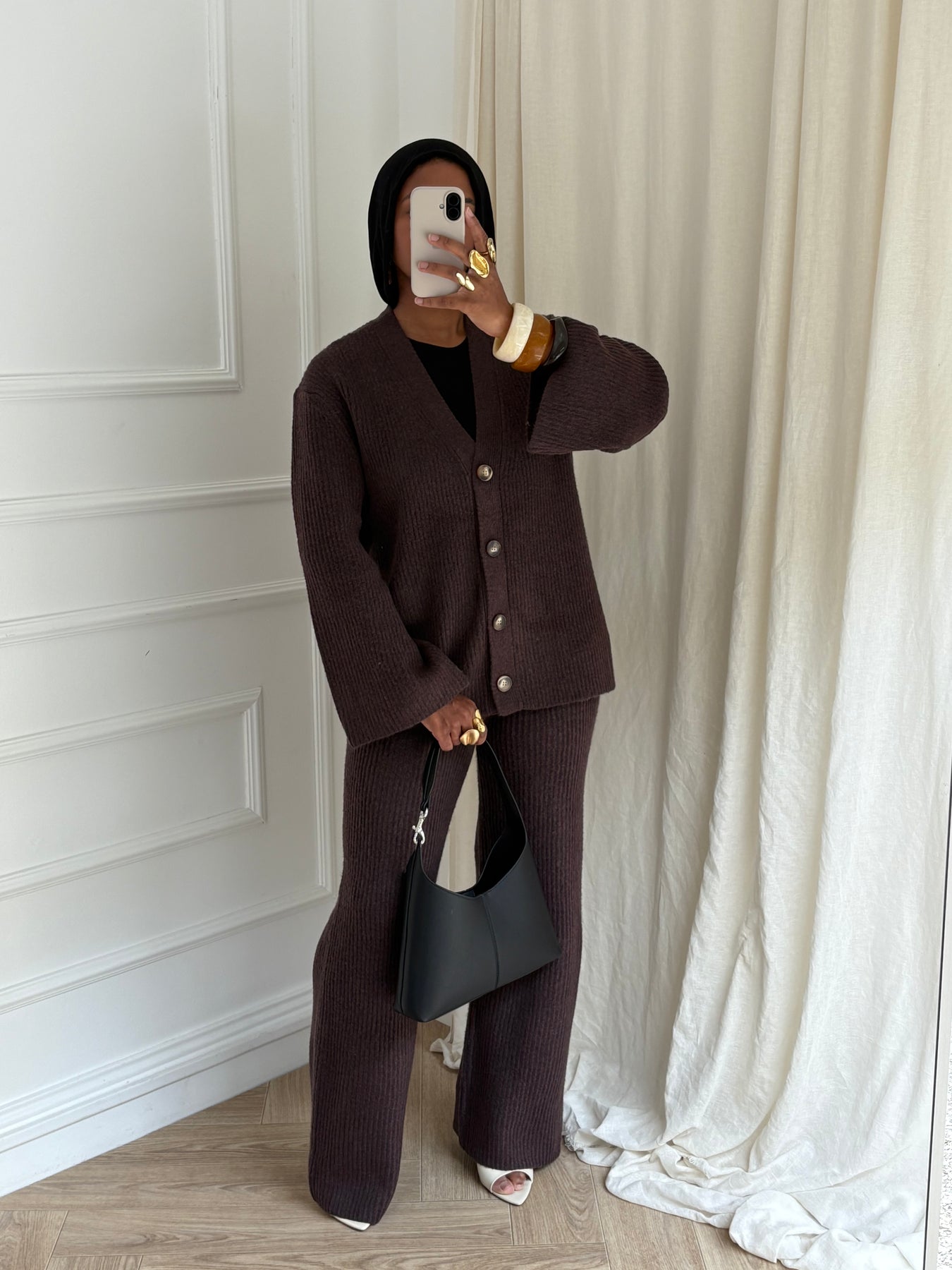 Un ensemble cocooning et élégant, composé d’un gilet court à boutons et d’un pantalon ample ultra confortable.