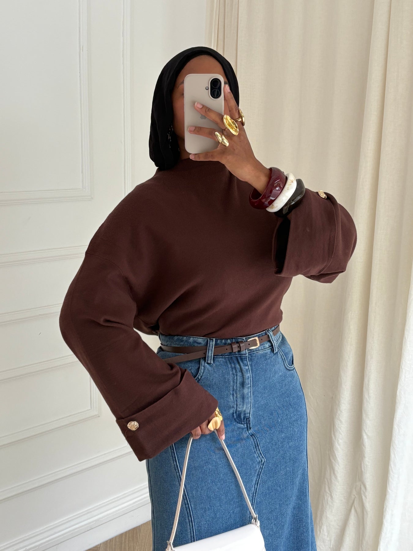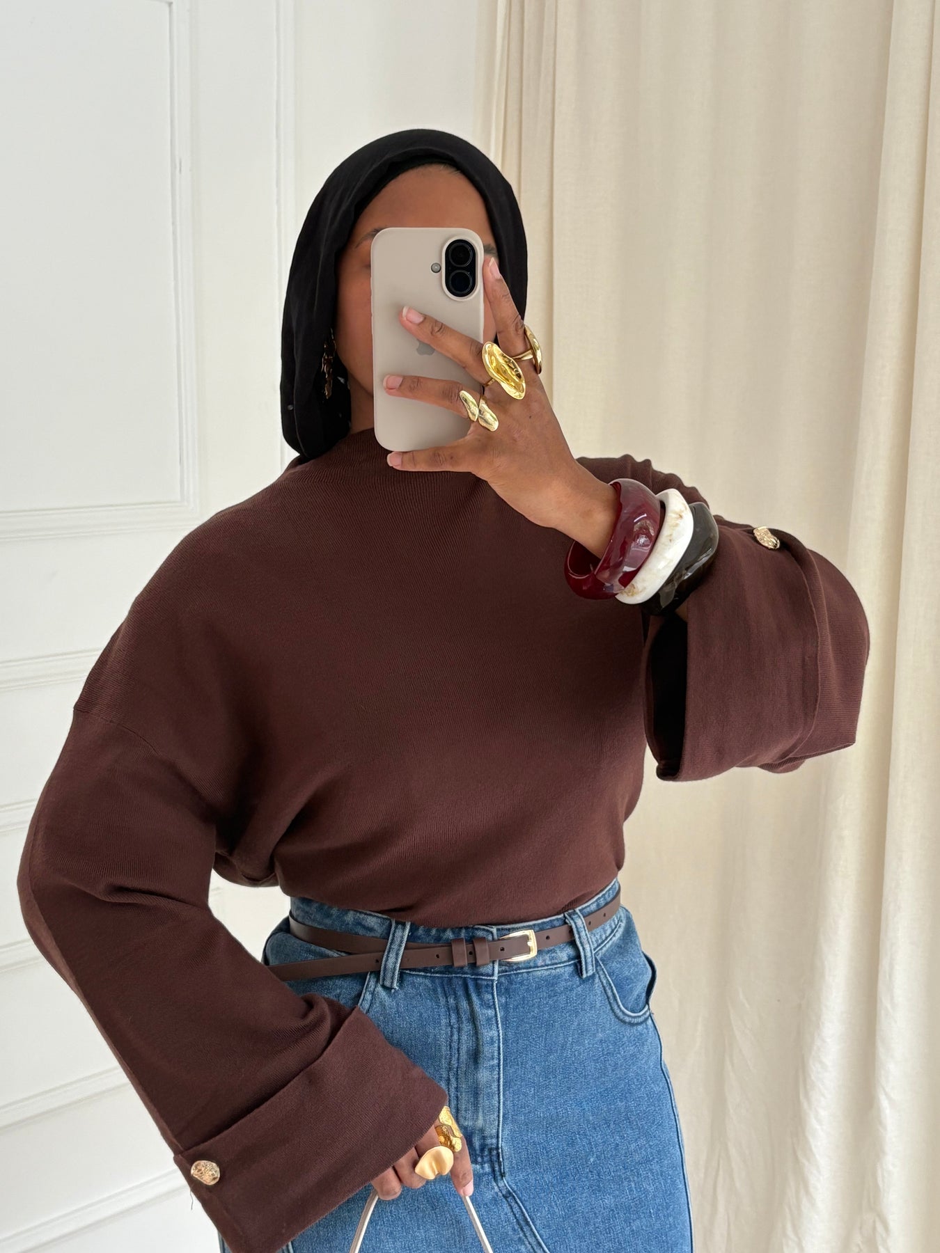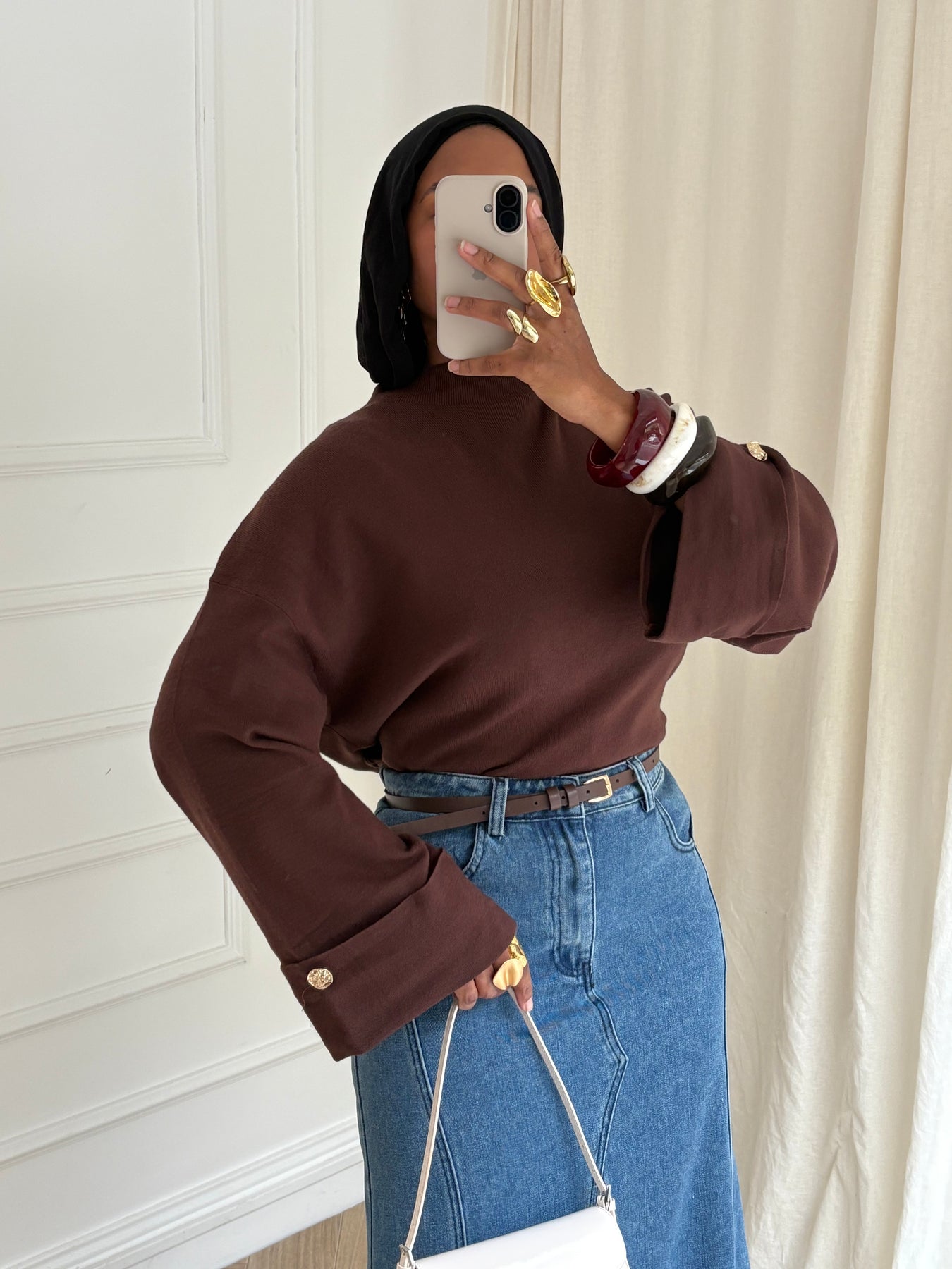 PULL MANCHES ÉVASÉE MARRON