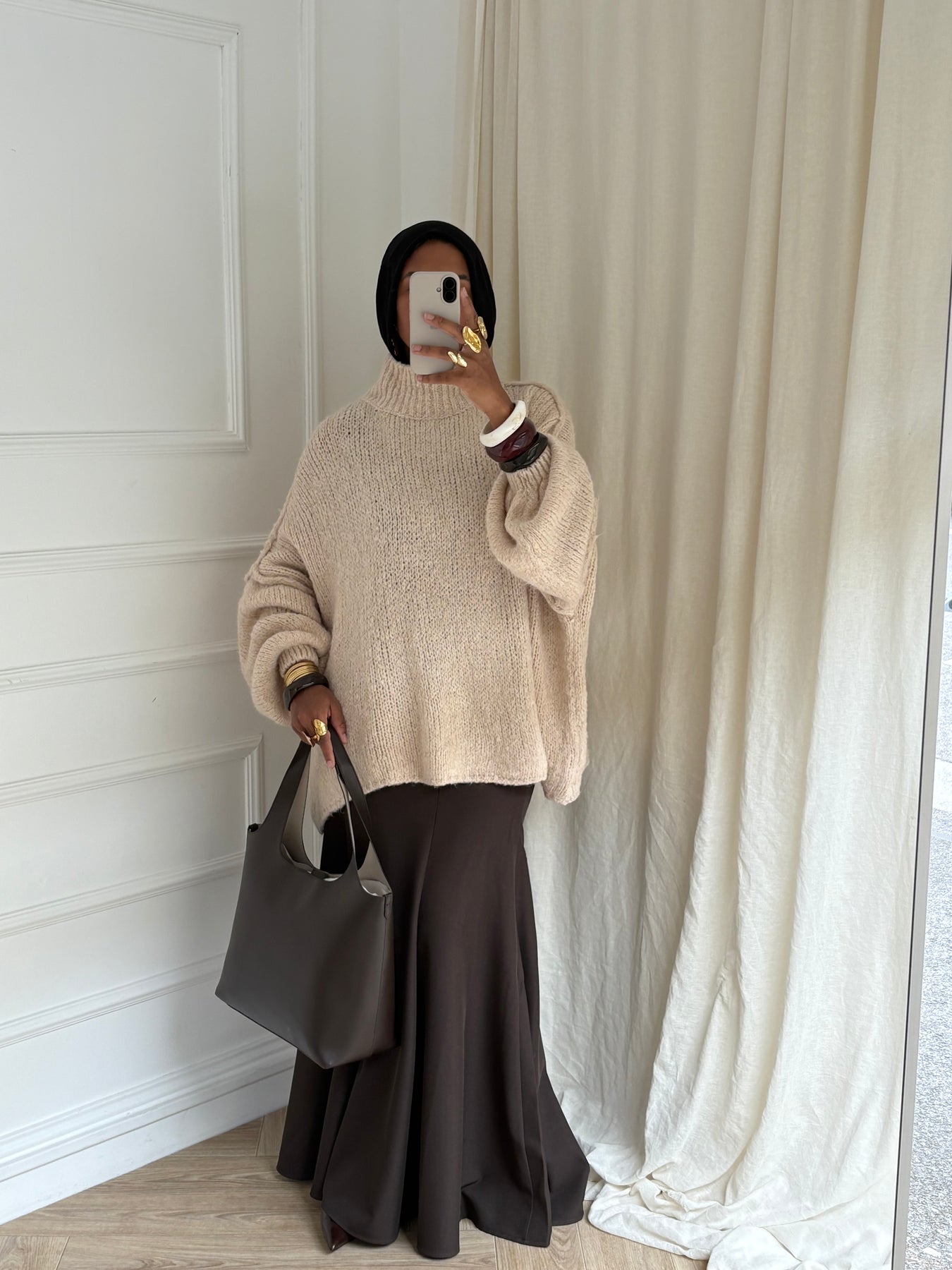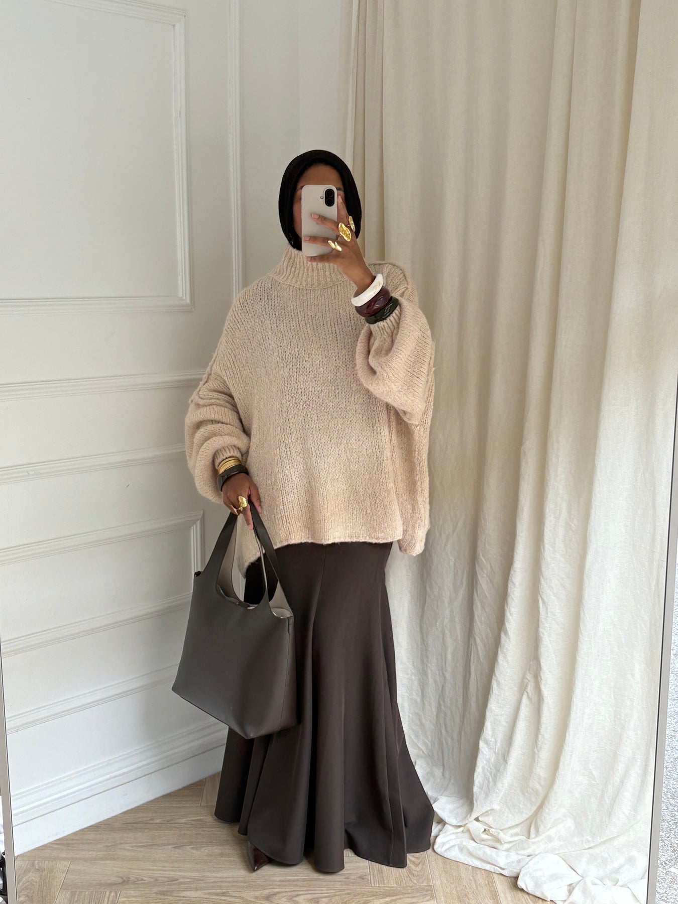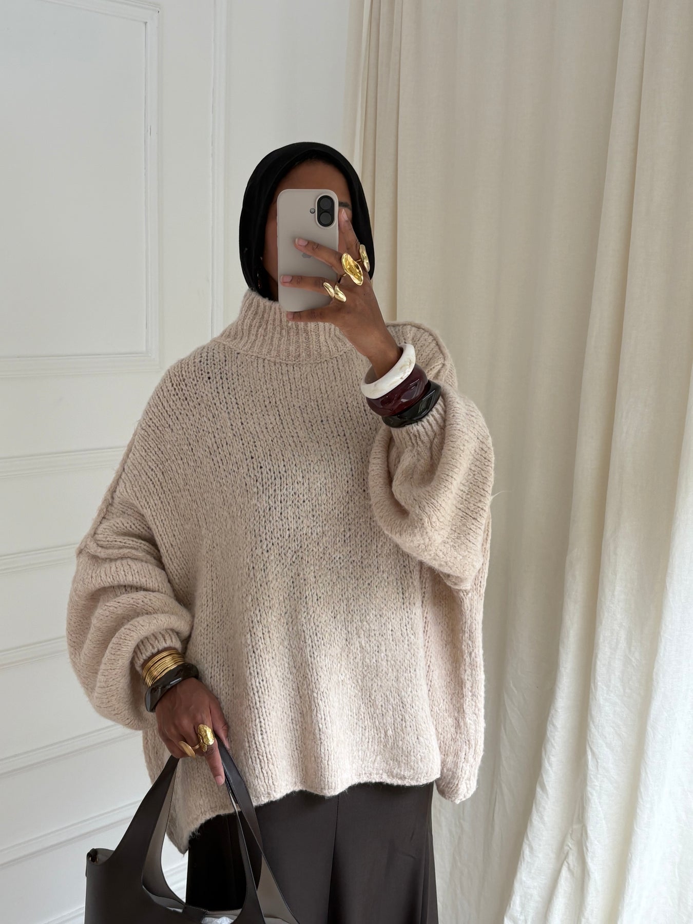 Ce pull oversize ultra comfy est un vrai cocon de confort ! Sa coupe généreuse couvre joliment les fesses, pour un style à la fois modeste et chic, et on s’y sent tellement bien dedans. Les manches longues et le col légèrement travaillé apportent une touche moderne et féminine, parfaite pour toutes les occasions.