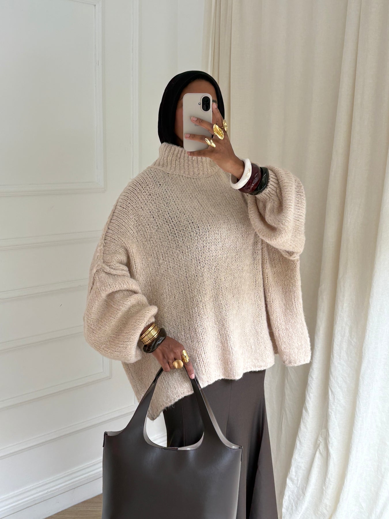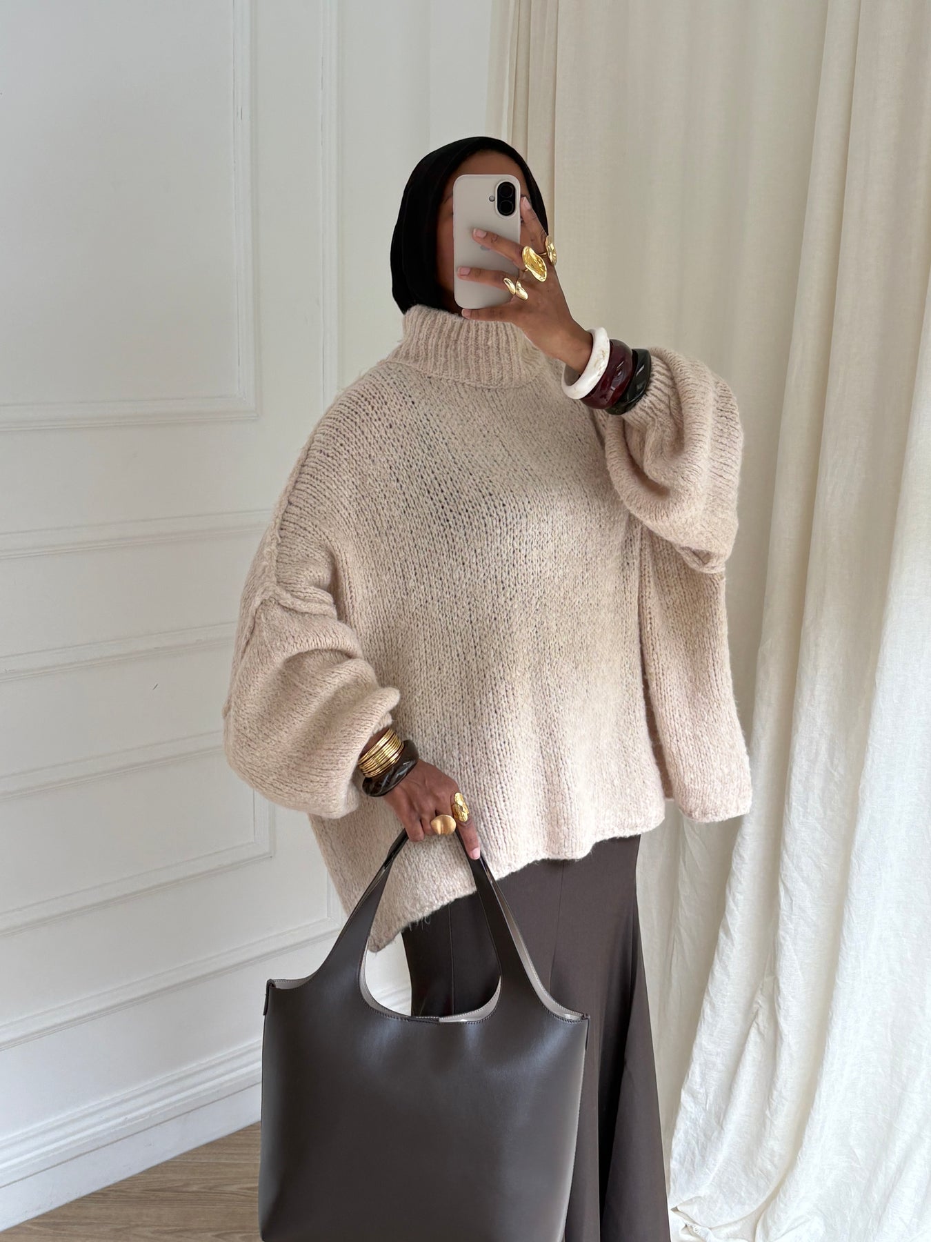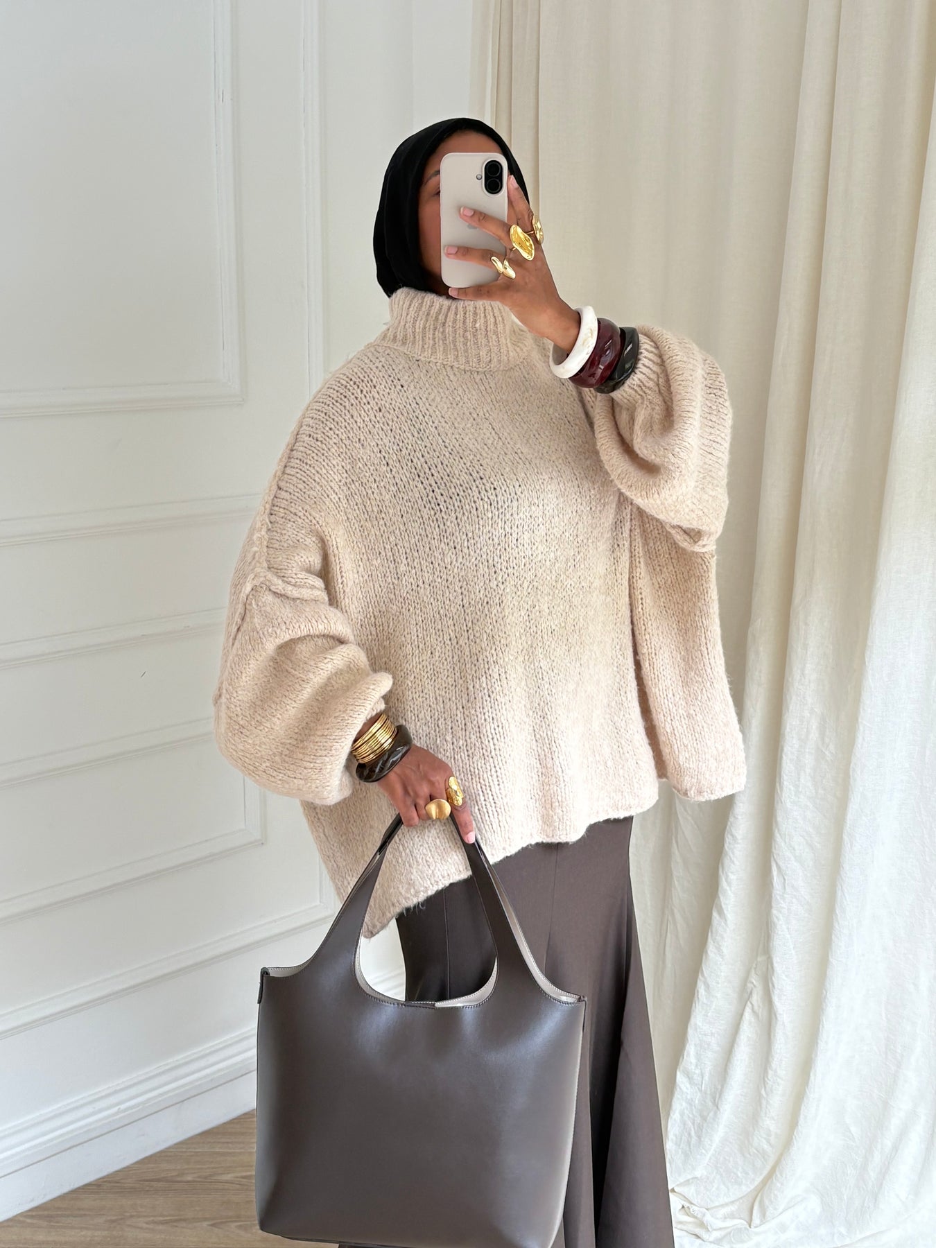 Ce pull oversize ultra comfy est un vrai cocon de confort ! Sa coupe généreuse couvre joliment les fesses, pour un style à la fois modeste et chic, et on s’y sent tellement bien dedans. Les manches longues et le col légèrement travaillé apportent une touche moderne et féminine, parfaite pour toutes les occasions.