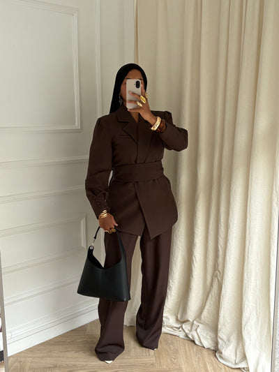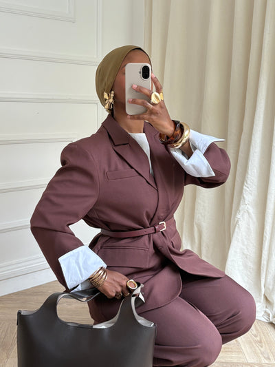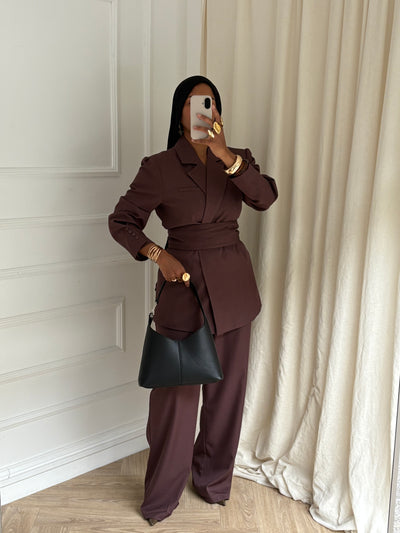 BLAZER PREMIUM CEINTURE MARRON FONCÉ
