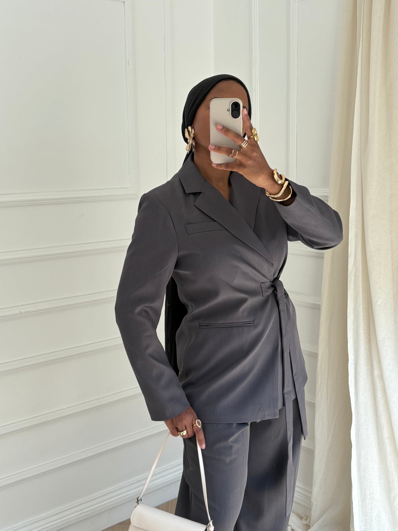 Un blazer au design unique, attaché sur le côté pour un tombé original et ultra élégant.
