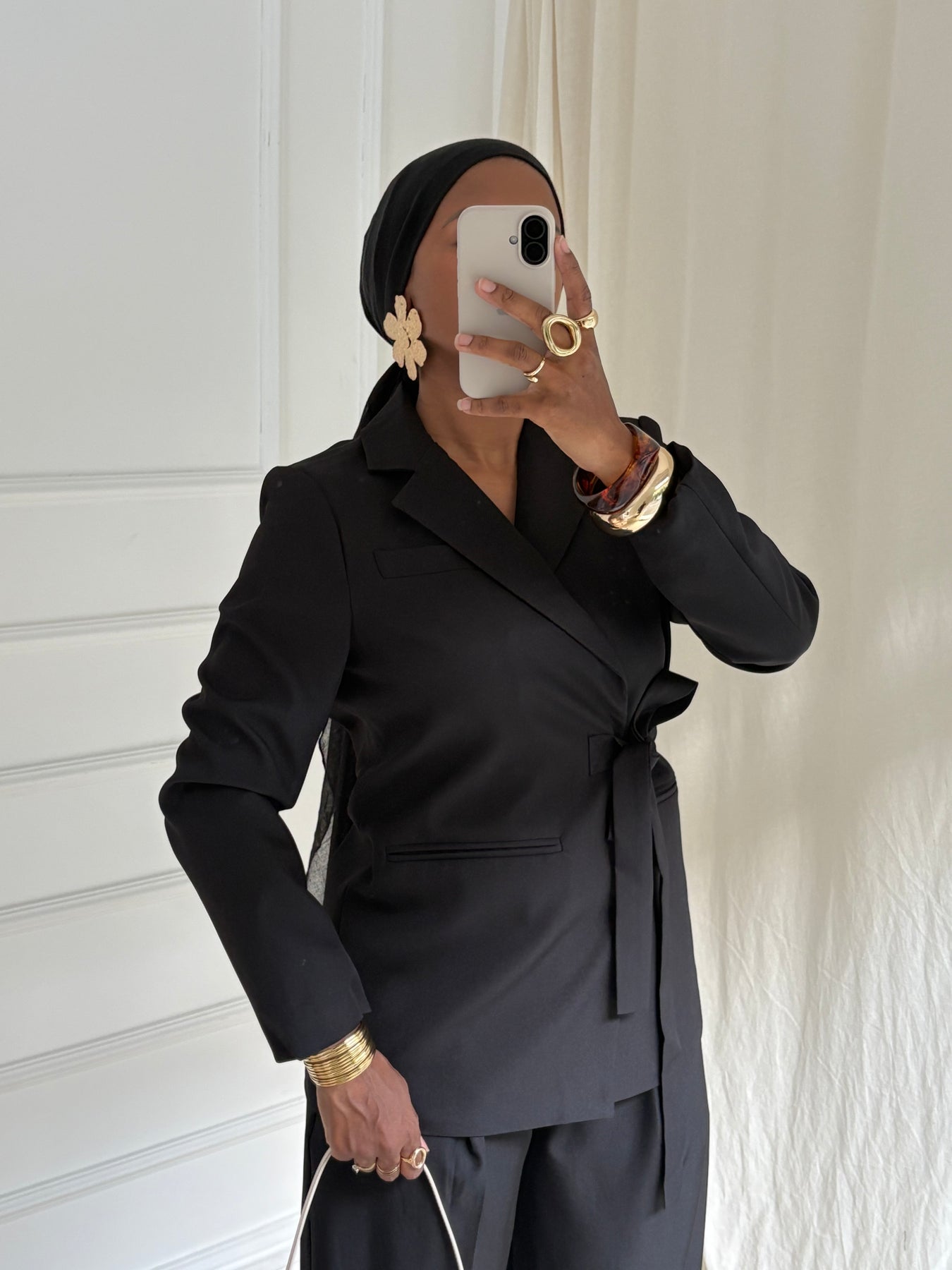 Un blazer au design unique, attaché sur le côté pour un tombé original et ultra élégant.