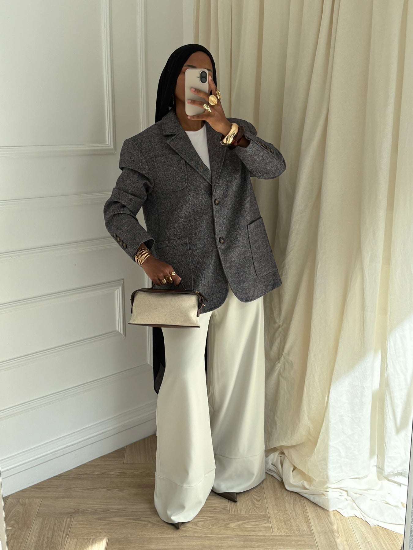 Cette veste oversize allie confort et style, idéale pour un look moderne et décontracté.