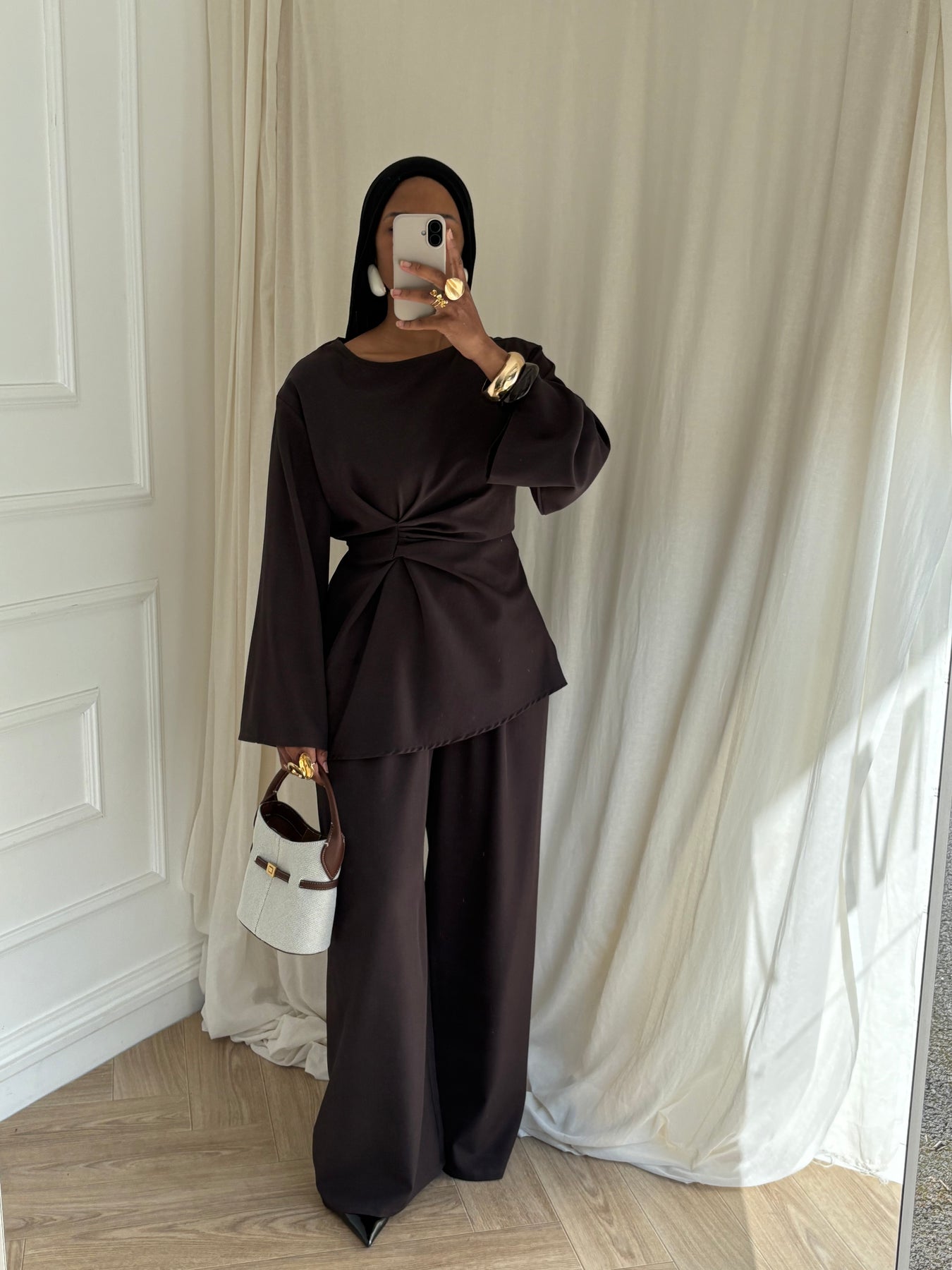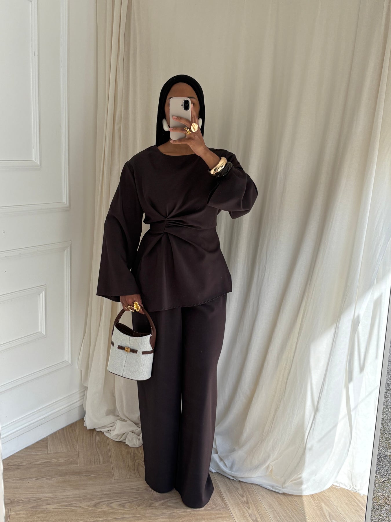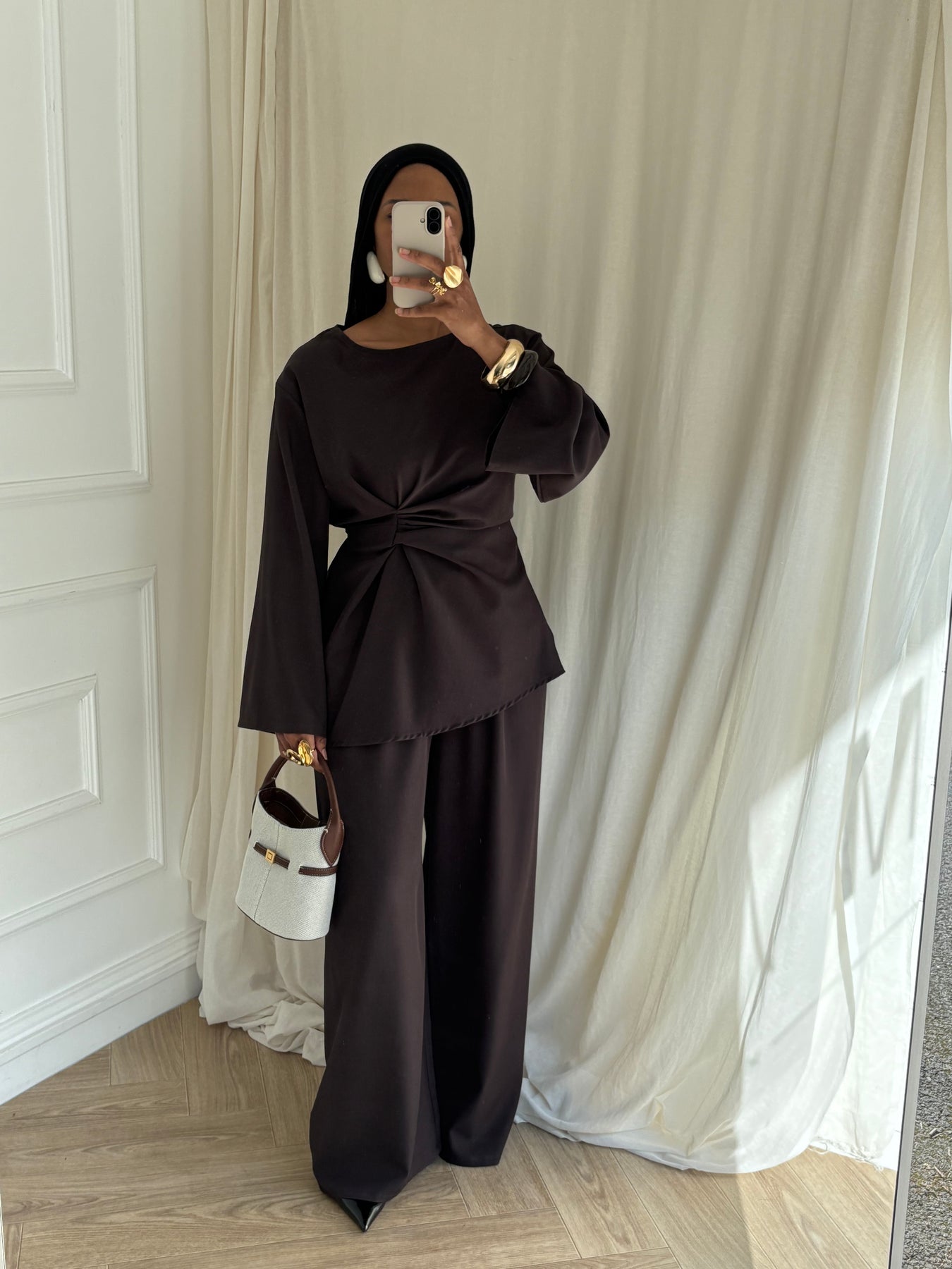 Ensemble deux pièces composé d’une blouse structurée et d’une pantalon large