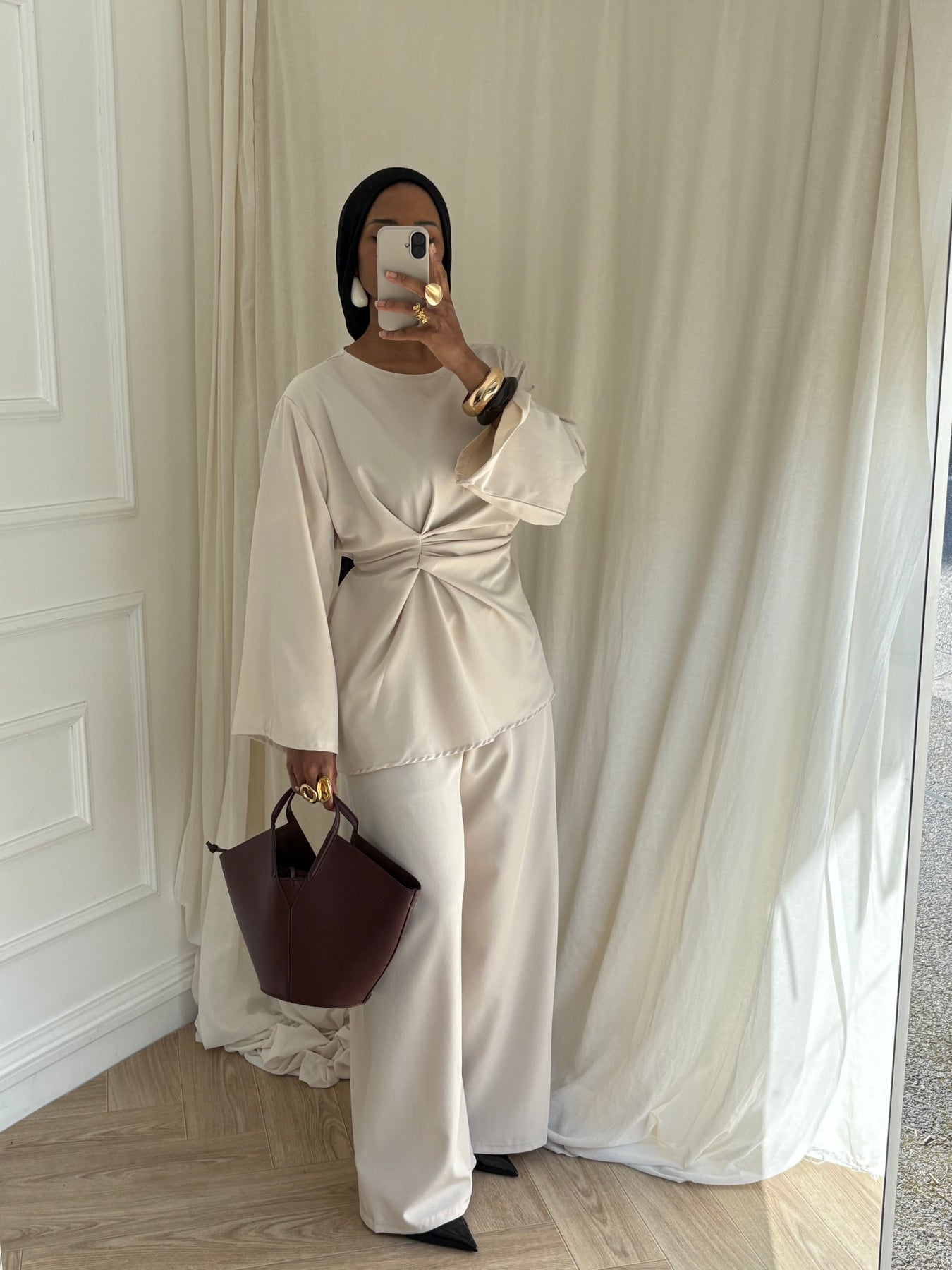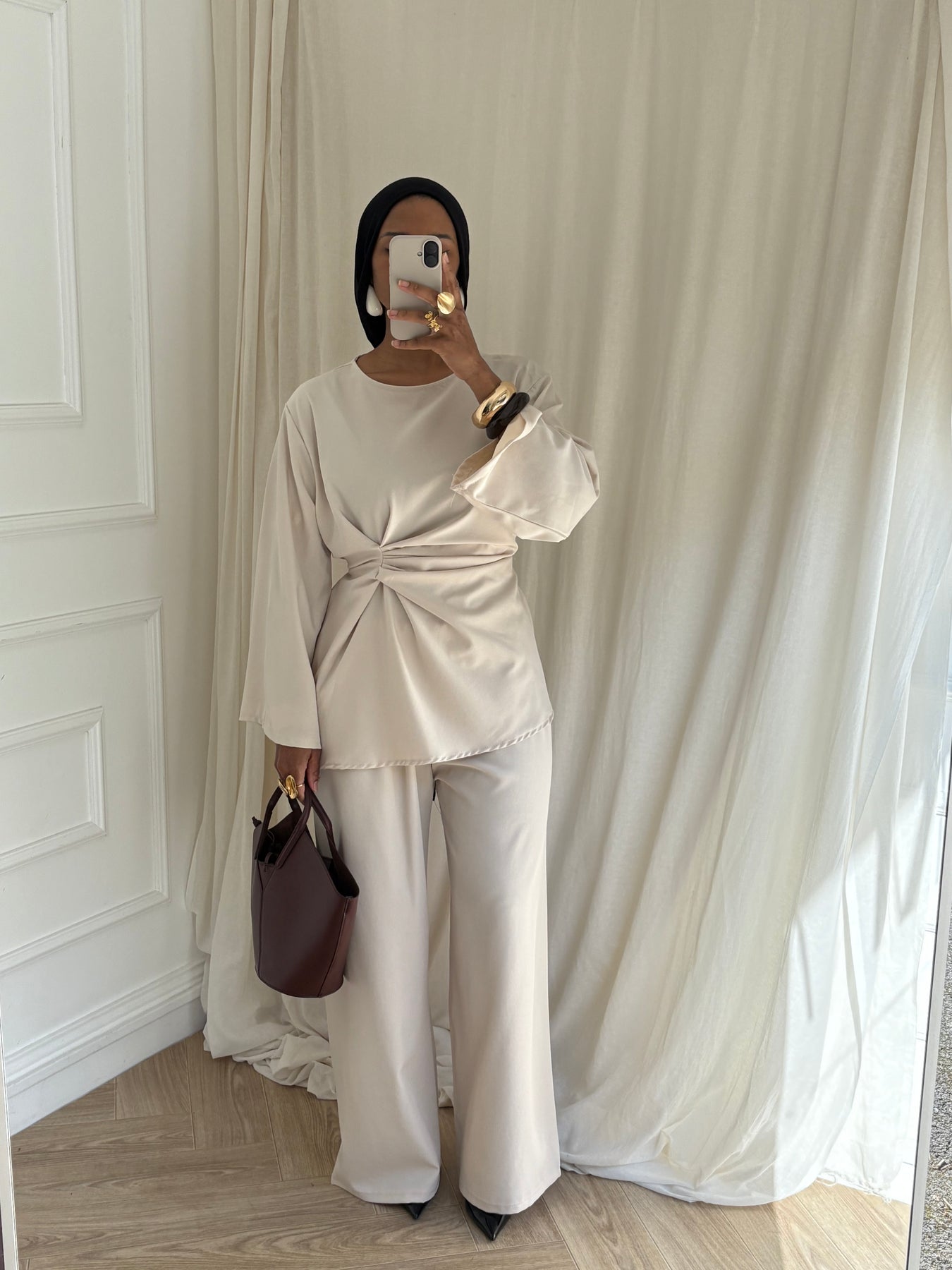 ENSEMBLE BLOUSE DRAPÉE BEIGE