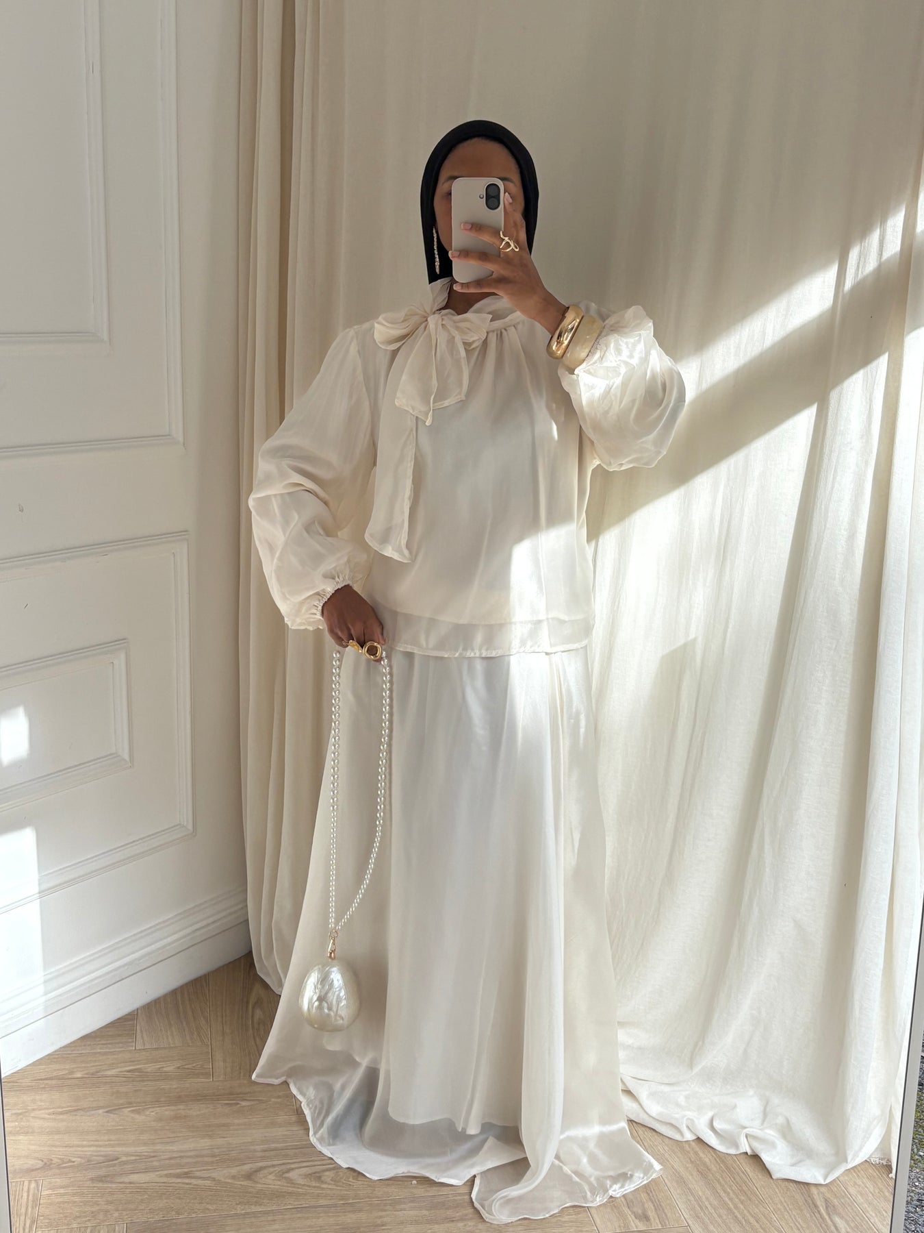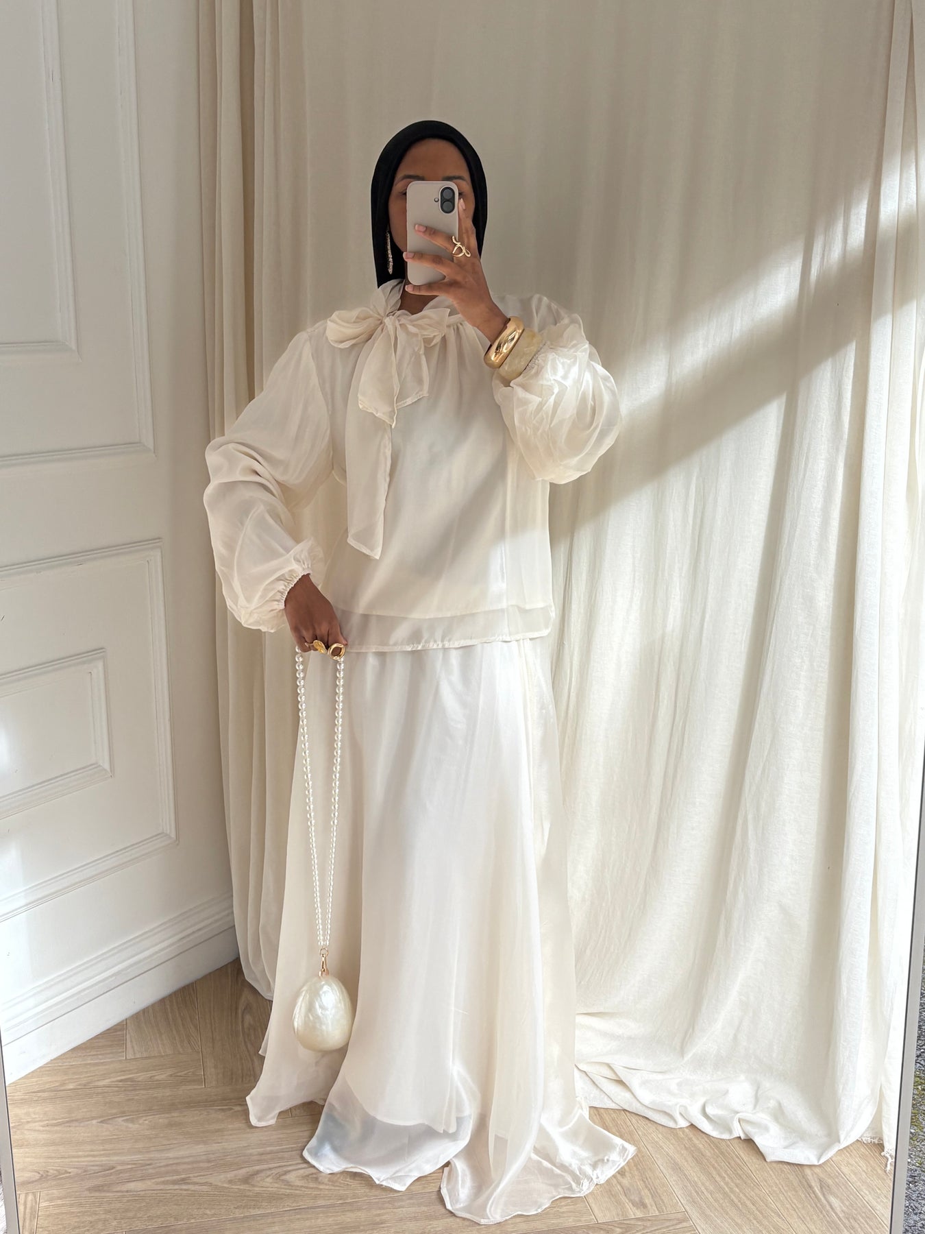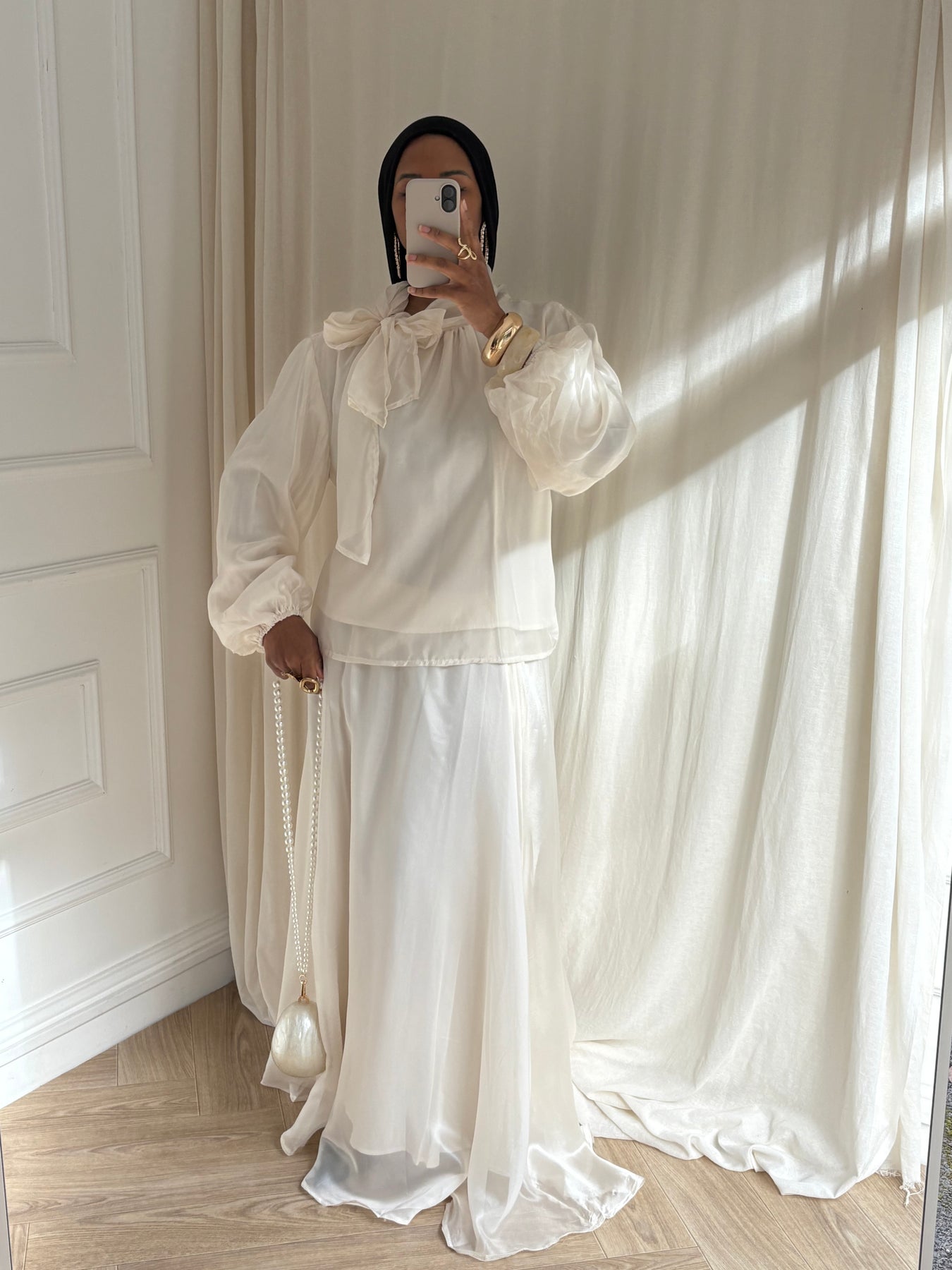 ENSEMBLE BLOUSE ET JUPE ORGANZA ÉCRU