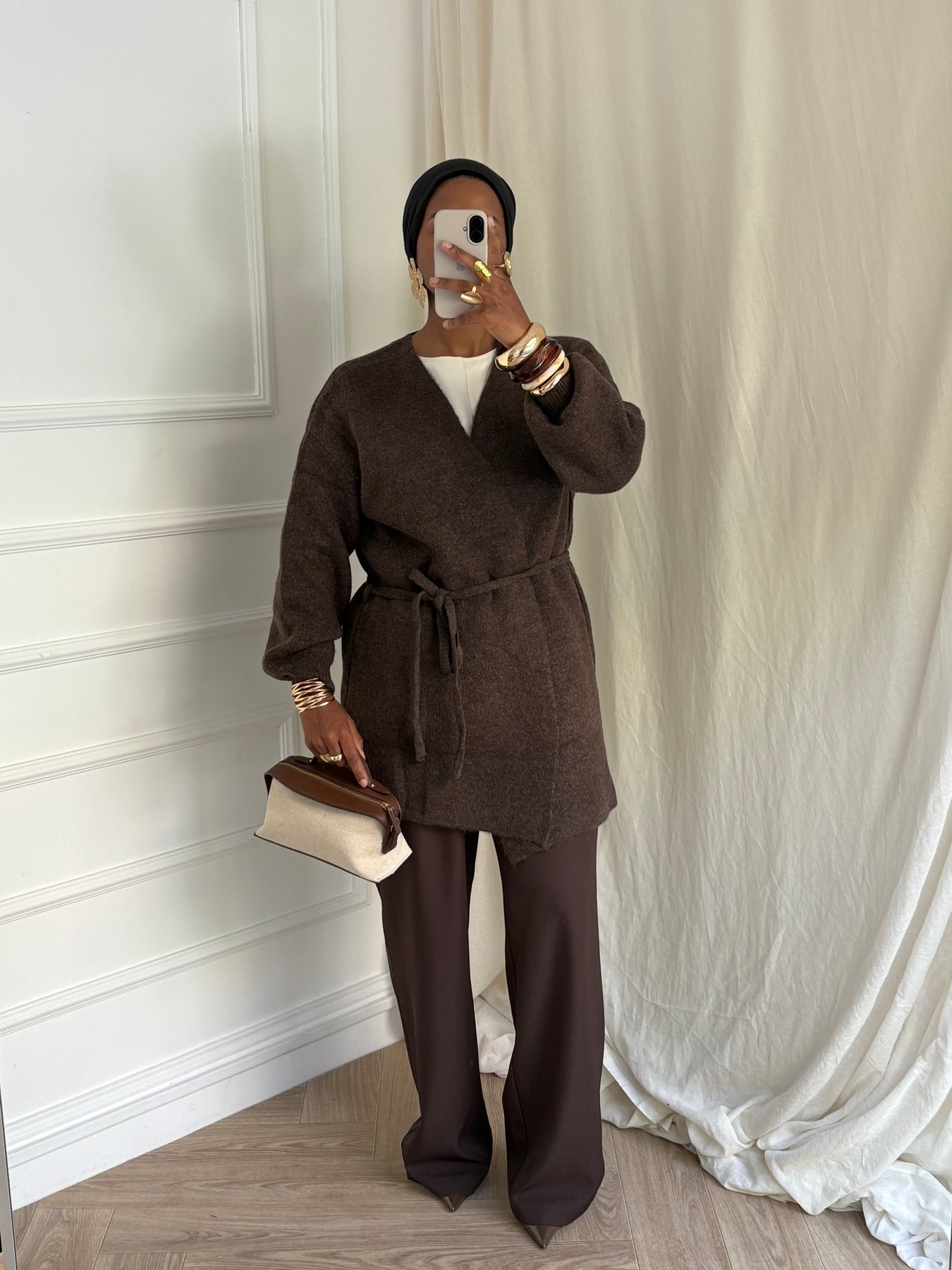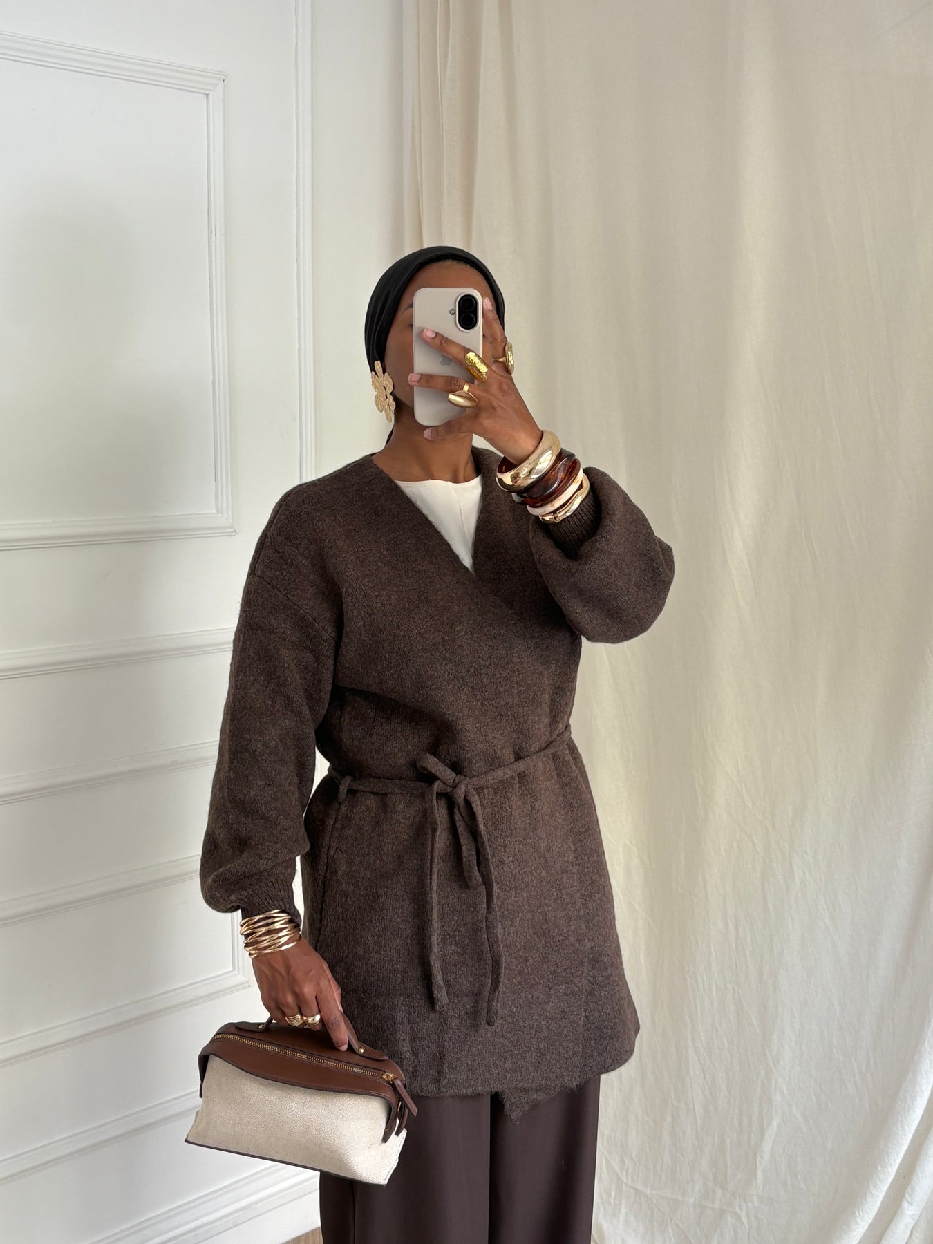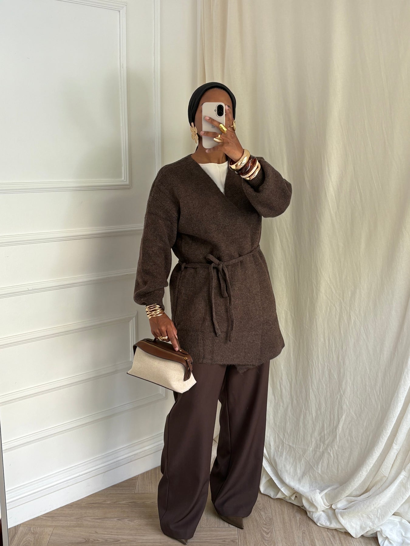 Un indispensable du dressing automne-hiver, à associer avec une robe, une jupe ou un pantalon large pour un look élégant et chaleureux.