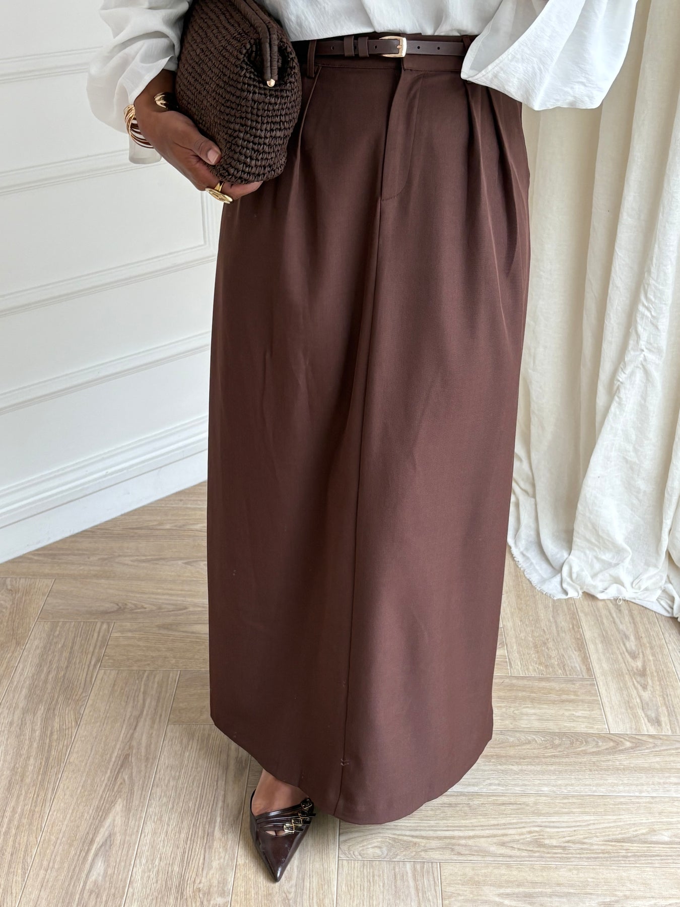 Jupe longue au tomber fluide et élégant, pensée pour sublimer une tenue chic et modeste.
