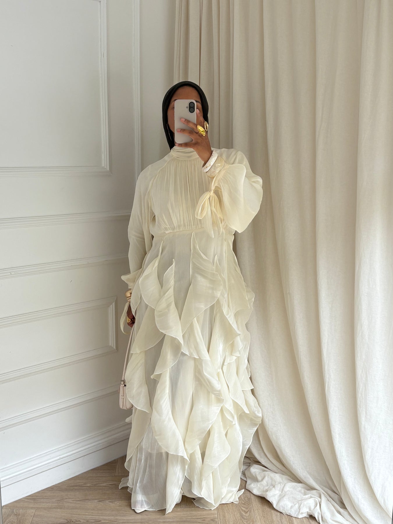 Une pièce d’exception, pensée pour sublimer chaque mouvement. Cette robe longue offre une allure aérienne grâce à ses volants fluides et son tombé délicat. Parfaite pour les occasions, les soirées, ou pour un look chic et raffiné en toute modestie.