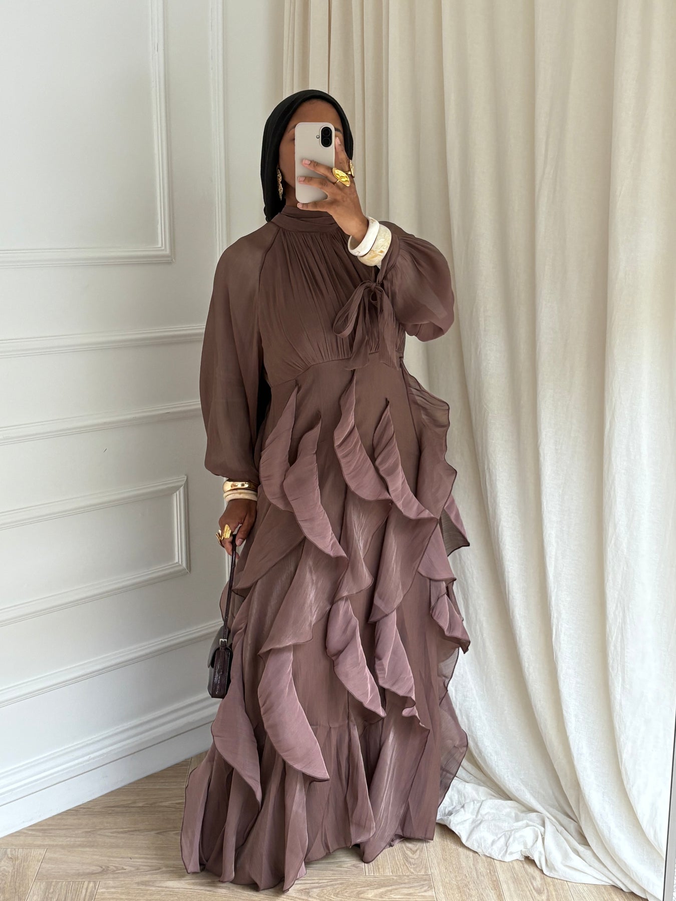 Une pièce d’exception, pensée pour sublimer chaque mouvement. Cette robe longue offre une allure aérienne grâce à ses volants fluides et son tombé délicat. Parfaite pour les occasions, les soirées, ou pour un look chic et raffiné en toute modestie.