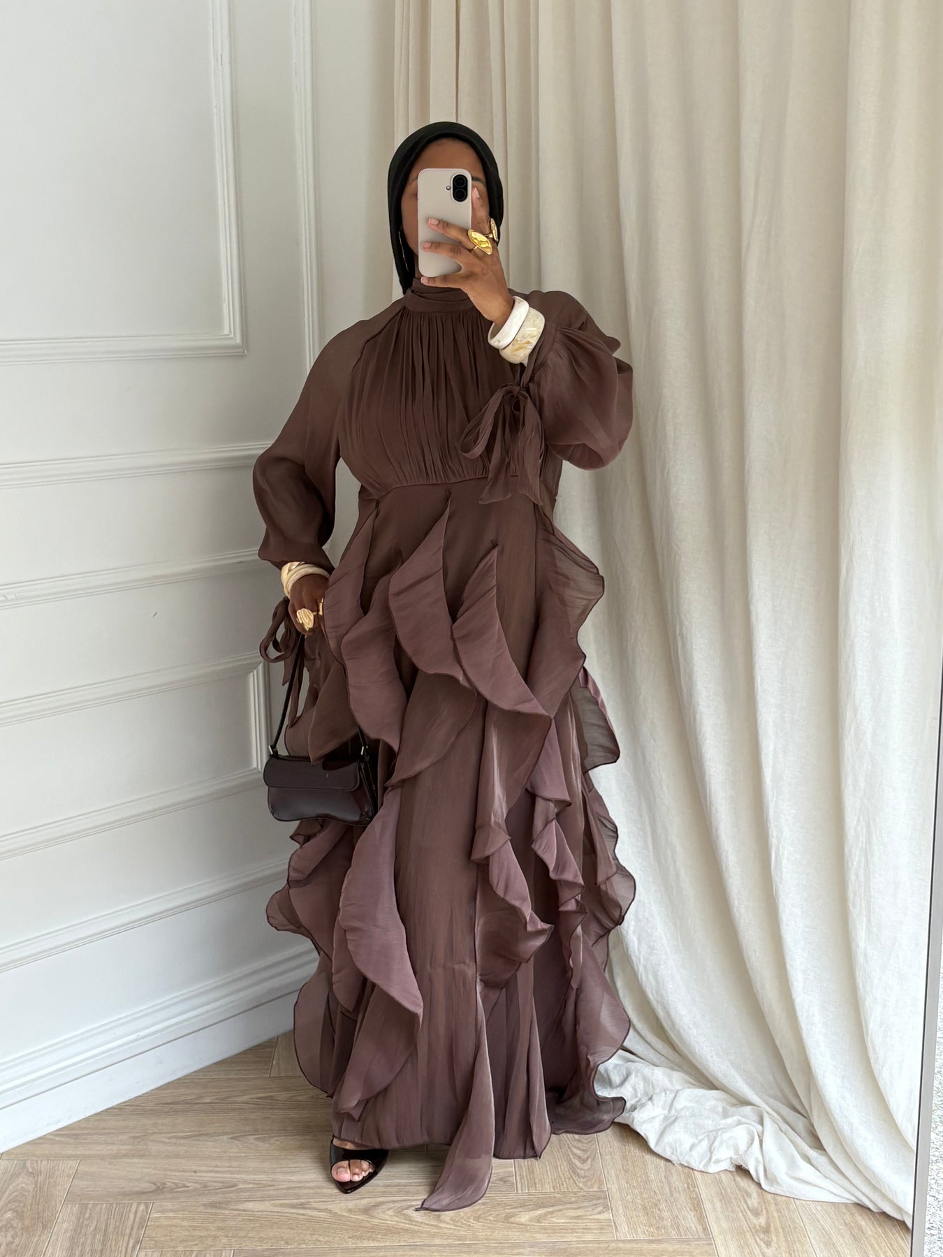 ROBE À VOLANTS MARRON