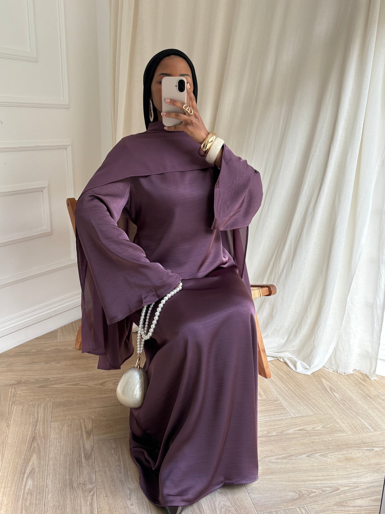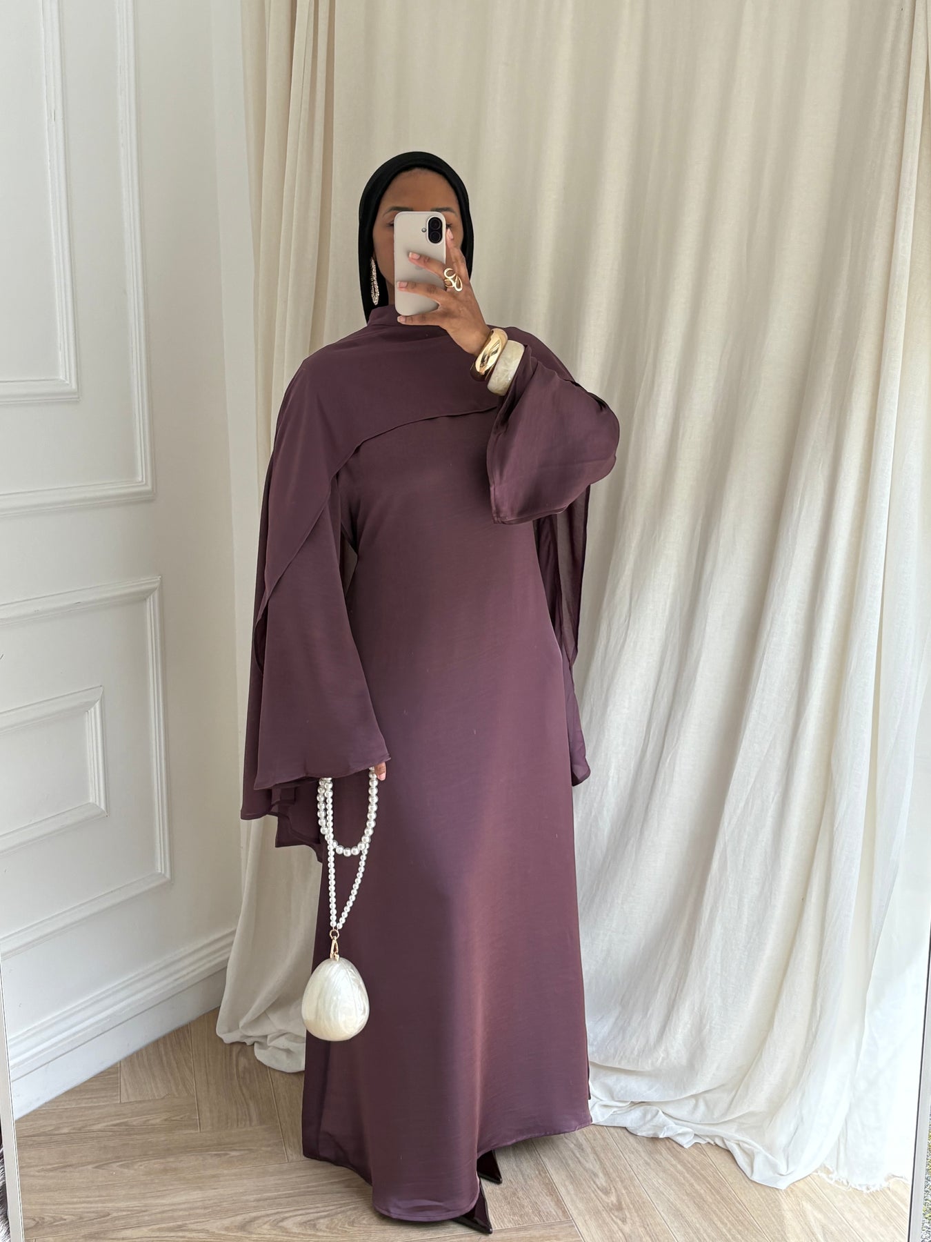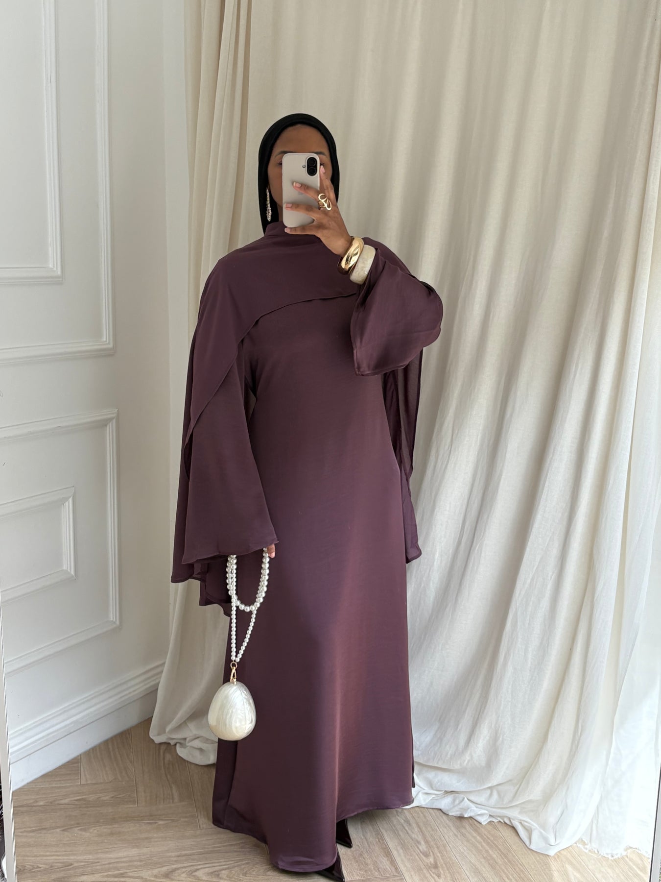 ROBE LUXE CAPE AMOVIBLE PRUNE