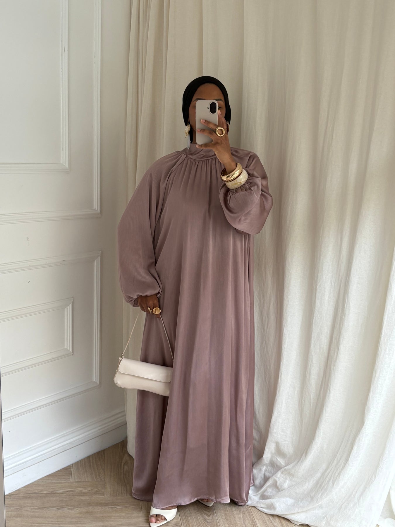 La Robe Essence est une pièce forte de notre collection événement, pensée pour l’Eid et toutes les grandes occasions où la pudeur rime avec élégance.