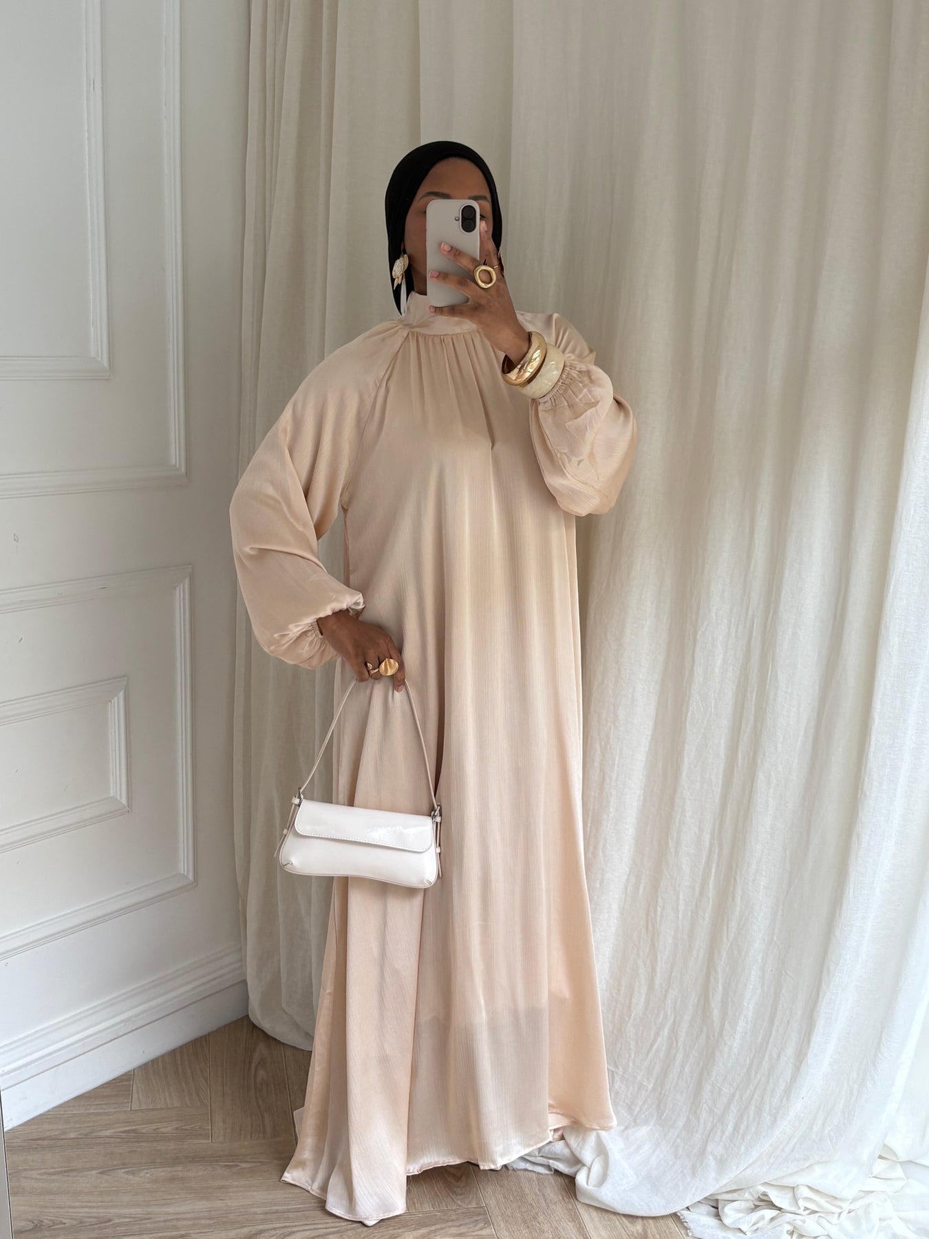 La Robe Essence est une pièce forte de notre collection événement, pensée pour l’Eid et toutes les grandes occasions où la pudeur rime avec élégance.