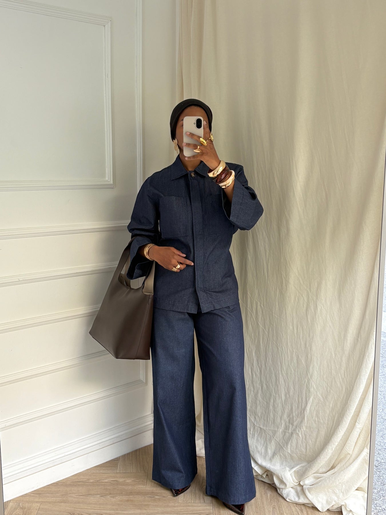 Ensemble en jean oversize, conçu pour un style moderne, confortable et élégant.